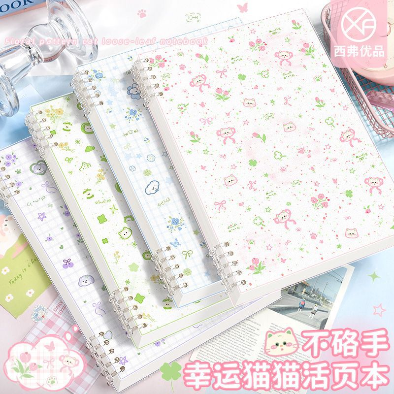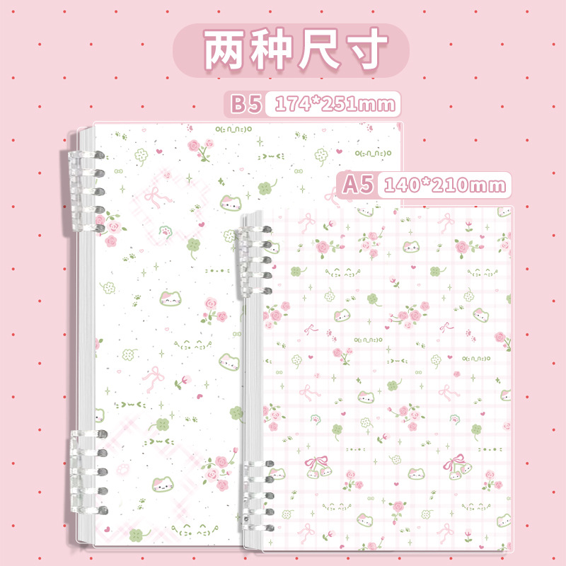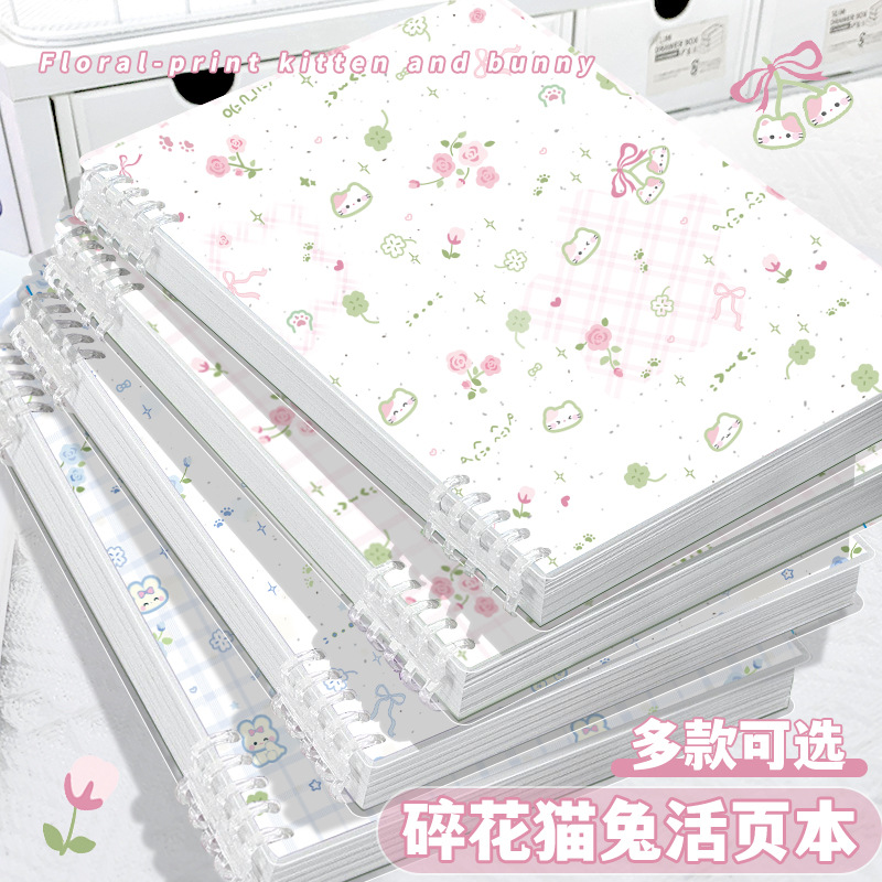 B5碎花猫兔活页线圈本可拆卸笔记本线圈本可爱A5记事本子学生手账