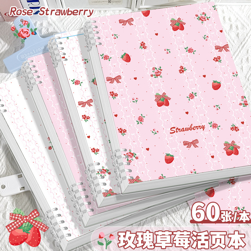 玫瑰草莓活页线圈本可拆卸笔记本B5线圈本可爱A5记事本子学生日记