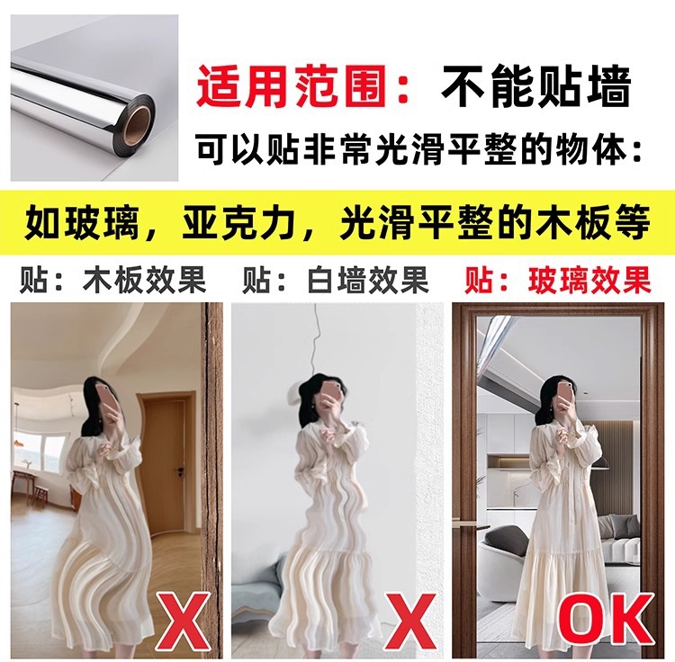 自粘镜面贴纸墙贴软镜子贴全身镜带背胶墙面地板装饰贴反光膜