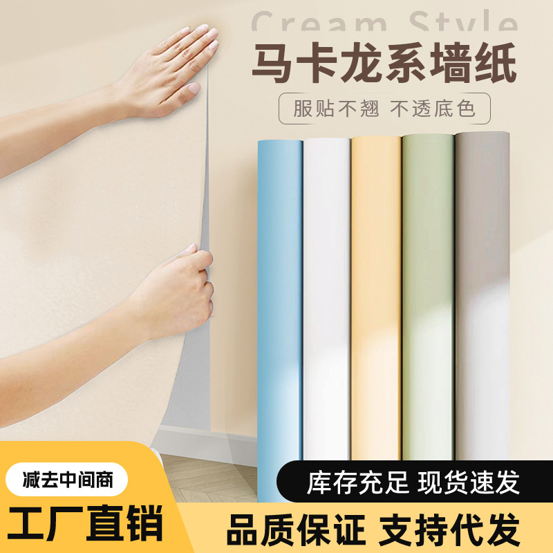 壁紙自己接着純色シールマカロン防水防湿壁紙寝室背景壁デスクトップたんす寝室客間