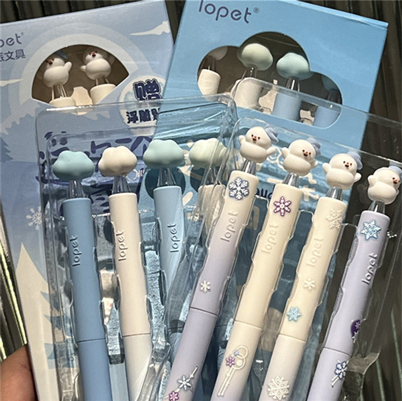 楽派青い雪だるまペンinsねじり回転中性ペン学生速乾ブラシ問題ST高颜値0.5黒ペン
