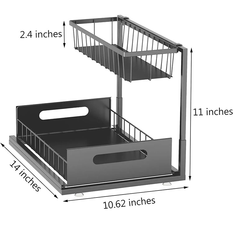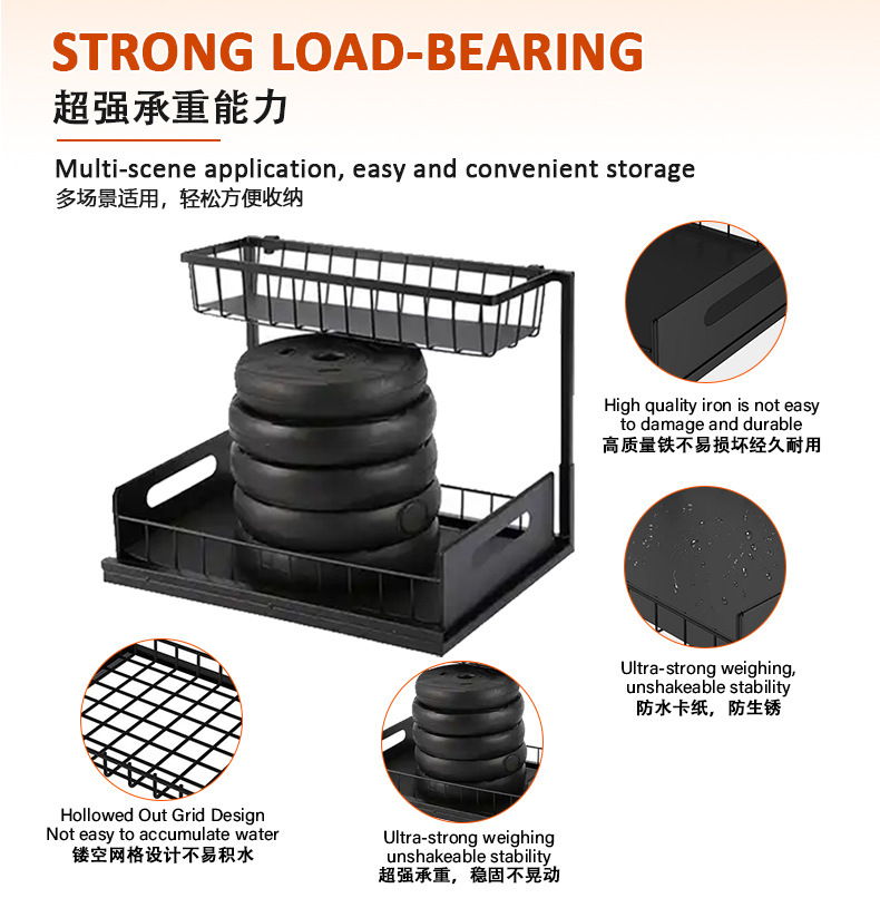 跨境亚马逊厨房下水槽置物架抽拉式调味料收纳分层拉篮浴室抽屉