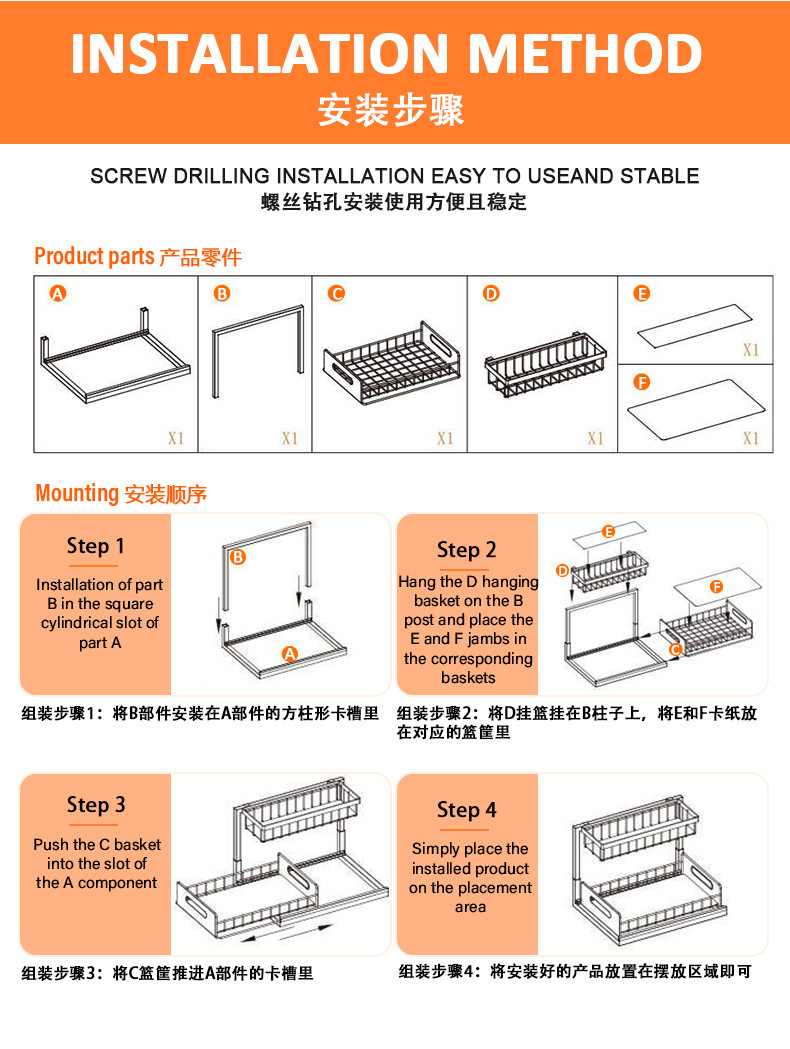 下水槽储物收纳架厨房橱柜置物架篮整理架子抽拉式抽屉可拆装跨境