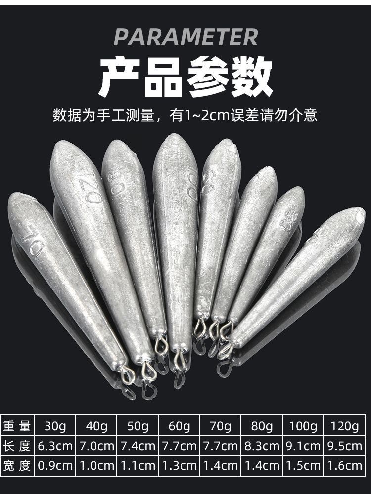 形状 加长柳叶铅坠30g,加长柳叶铅坠40g,加长柳叶铅坠50g,加长柳叶铅坠60g,加长柳叶铅坠70g,加长柳叶铅坠80g,加长柳叶铅坠100g,加长柳叶铅坠120g