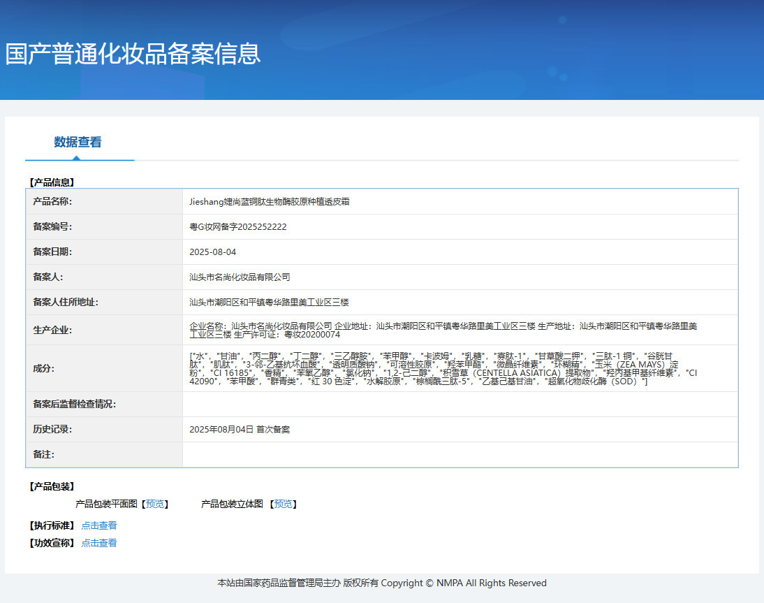 产品名称 婕尚蓝铜肽生物酶胶原种植透皮霜