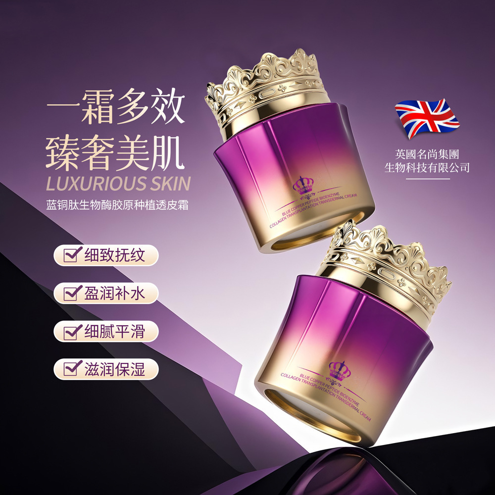 婕尚蓝铜肽生物酶胶原种植透皮霜保湿抗皱紧致美容院面霜素颜霜