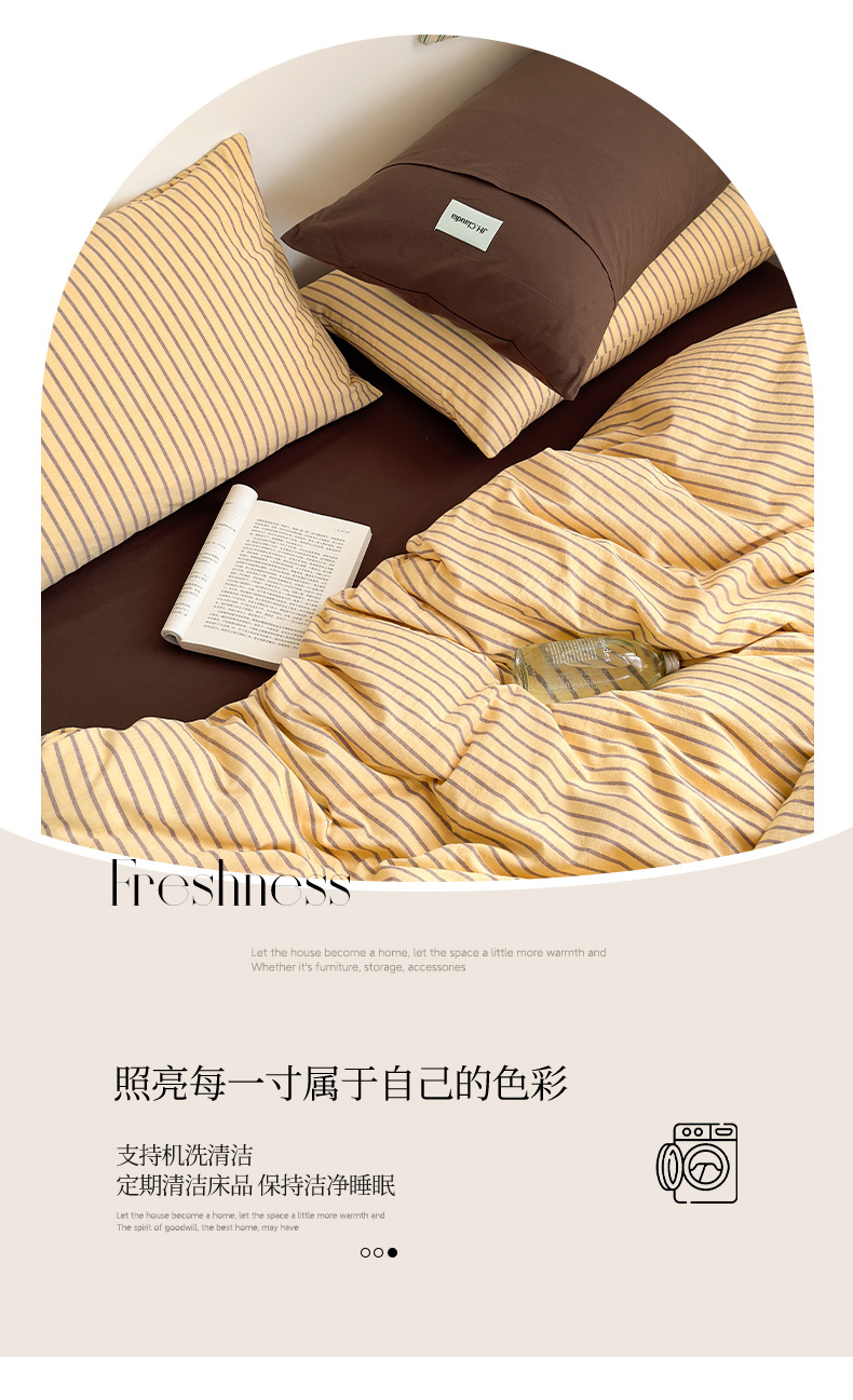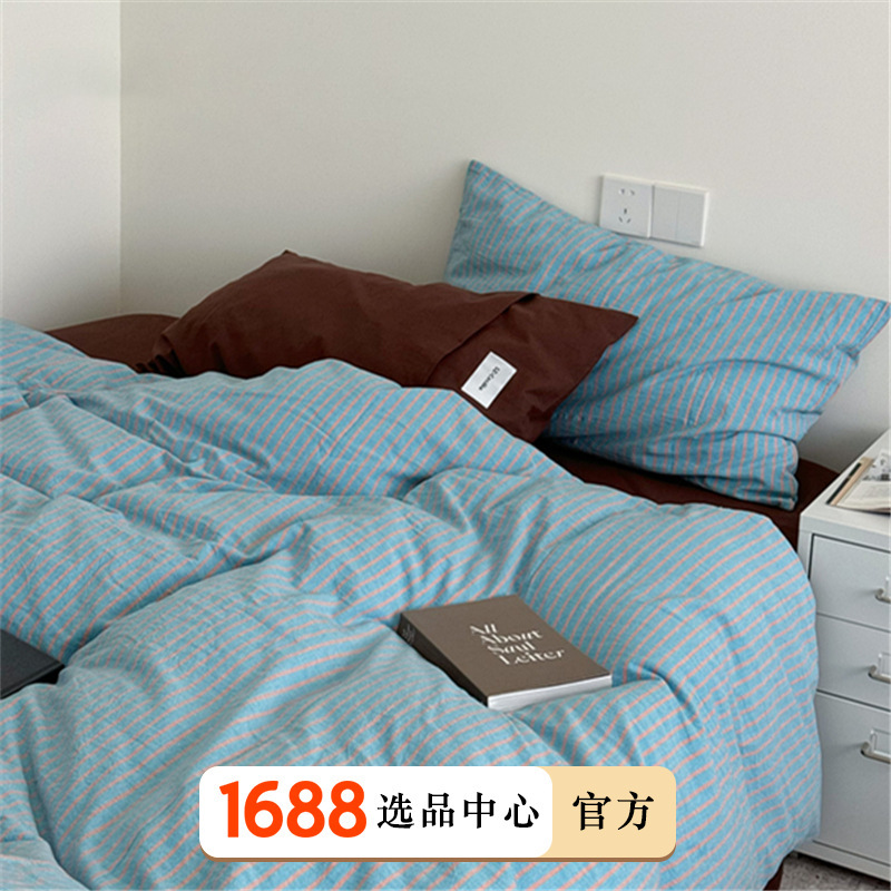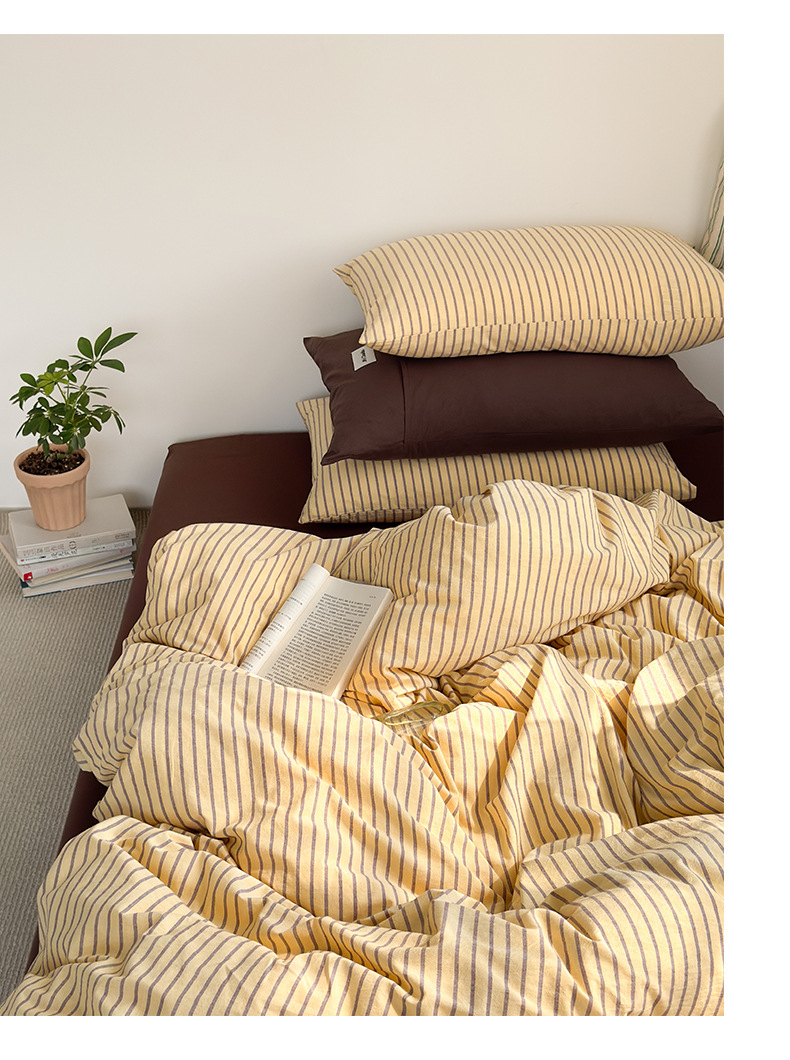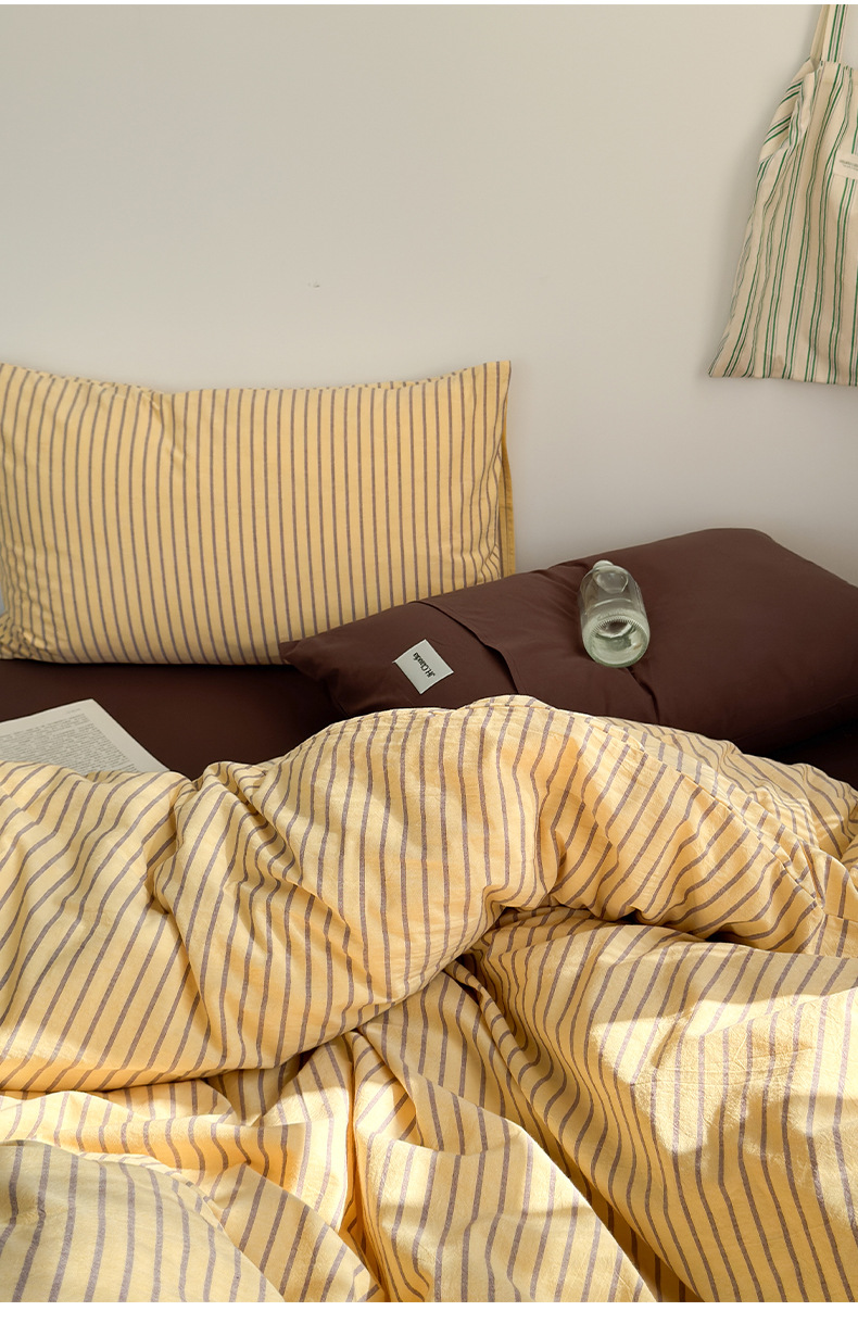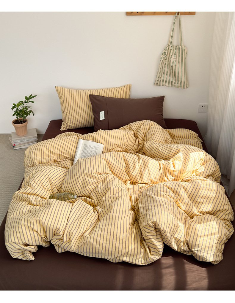 A类全棉条纹四件套纯棉简约色织水洗棉三件套床单被套床上用品