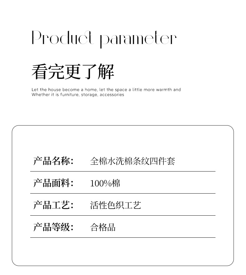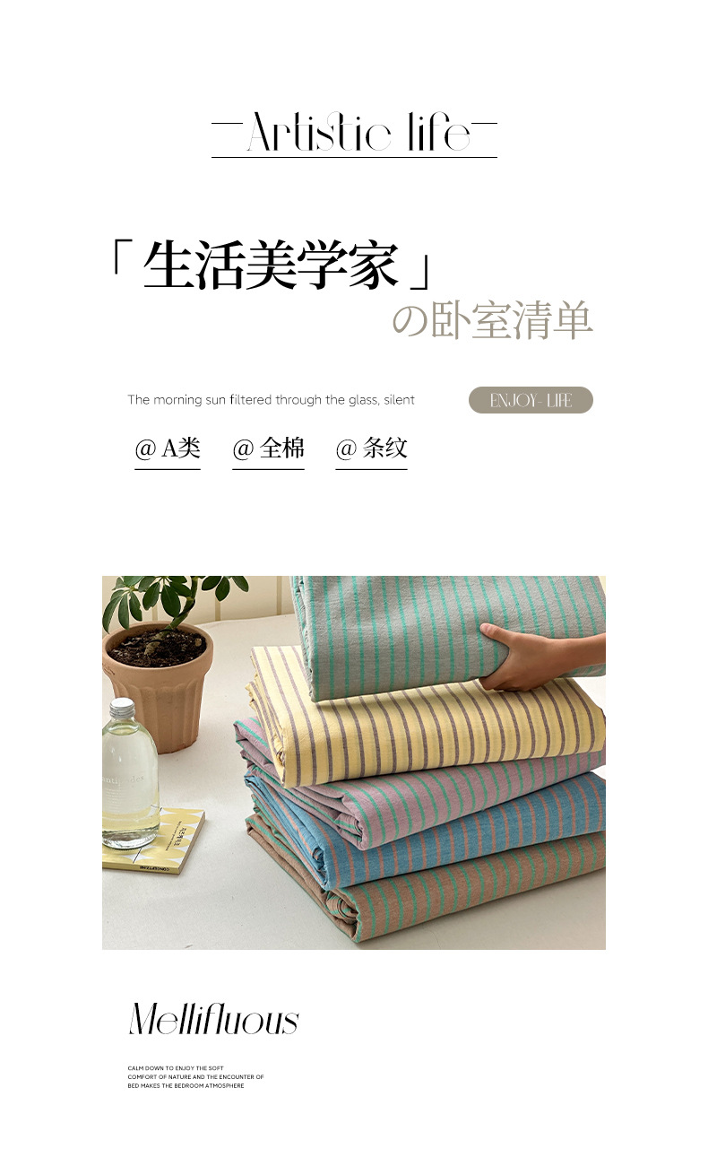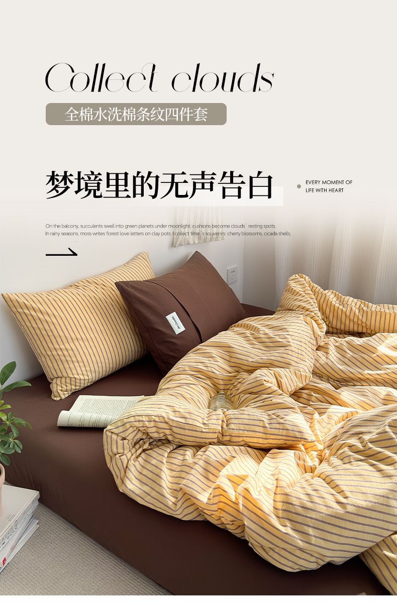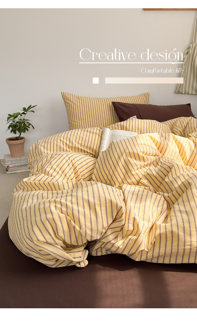 A类全棉条纹四件套纯棉简约色织水洗棉三件套床单被套床上用品