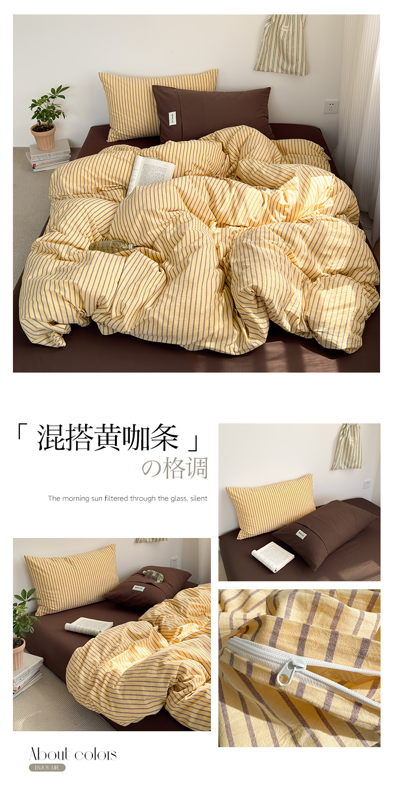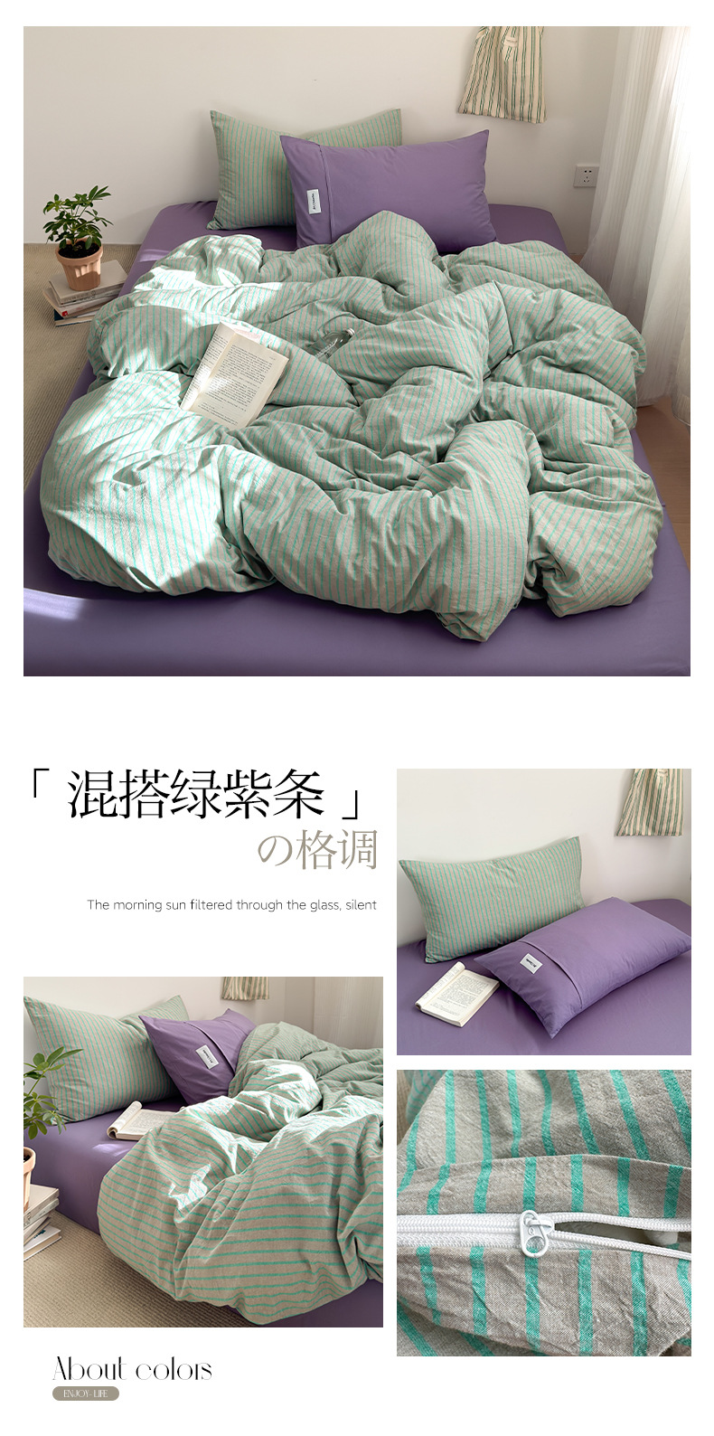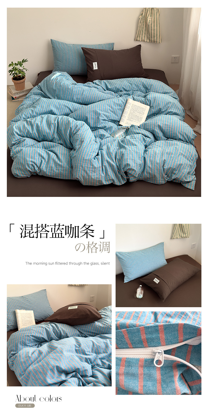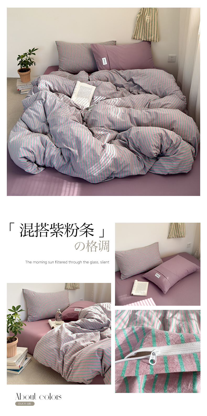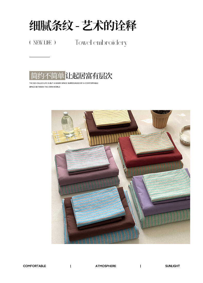 新疆全棉水洗棉五色条纹四件套纯棉床单床笠复古风混搭三件套