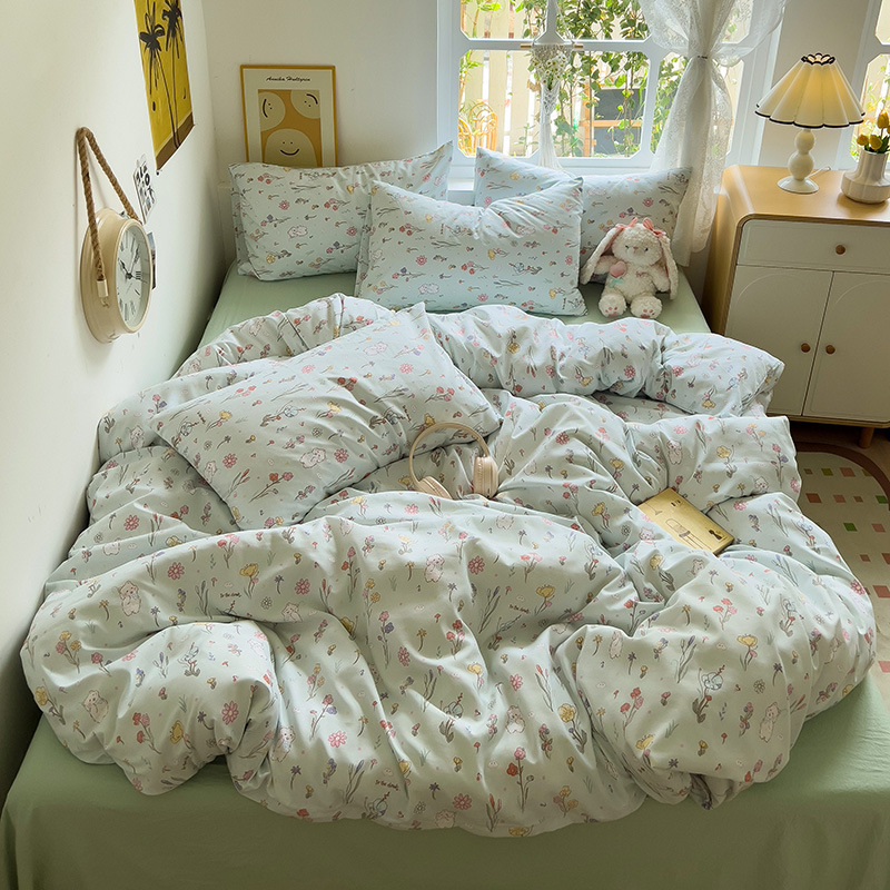 A類純綿二重糸四点セットベッド用品小清新砕花純綿シーツセット寮三点セット