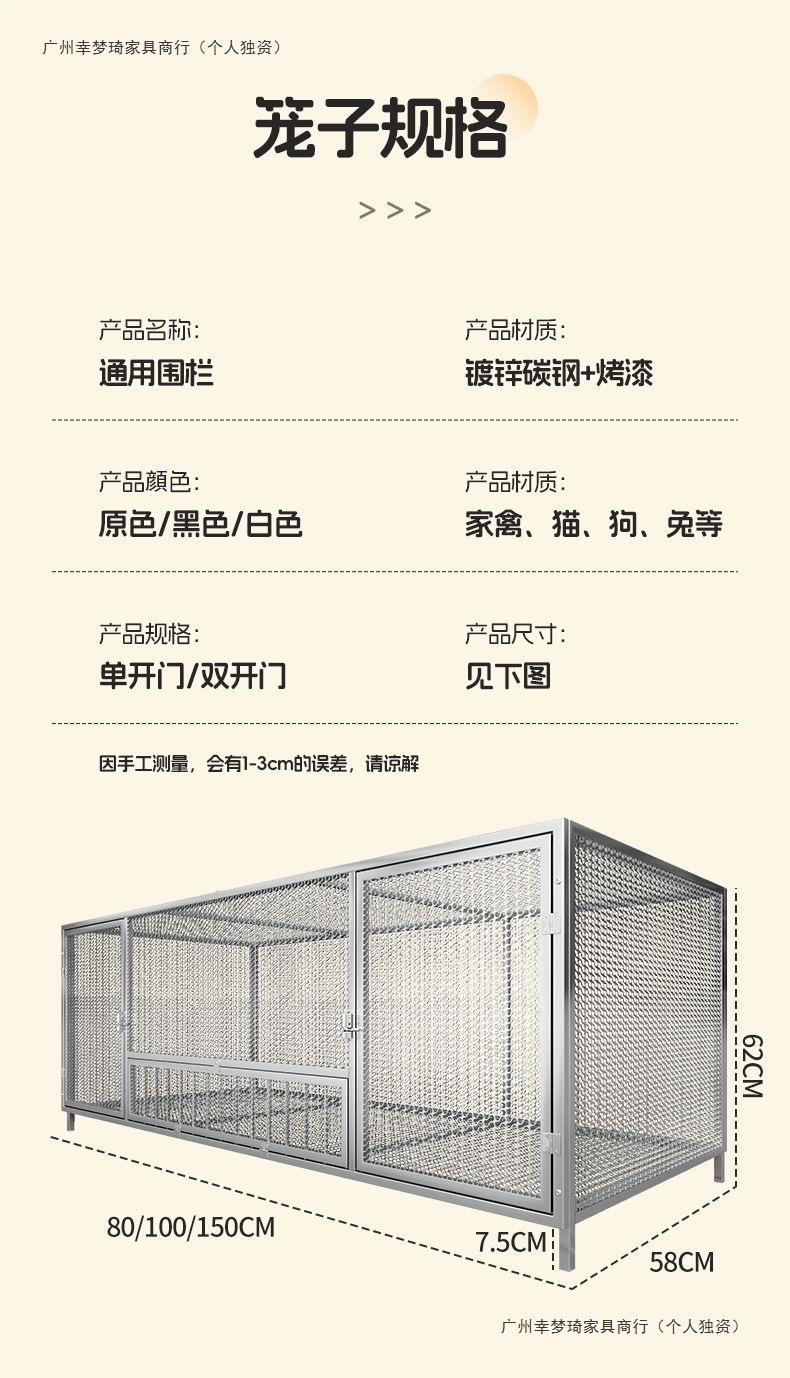 规格 【原色】80X58X62【天窗】,【原色/带喂食门】100X58X62【天窗】,【原色/喂食门】150X58X62天窗+双门,【黑色/带喂食门】100X58X62【天窗】,【黑色/喂食门】150X58X62天窗+双门,【白色/带喂食门】100X58X62【天窗】,【白色/喂食门】150X58X62天窗+双门