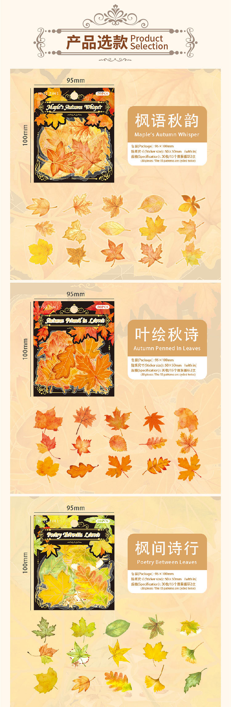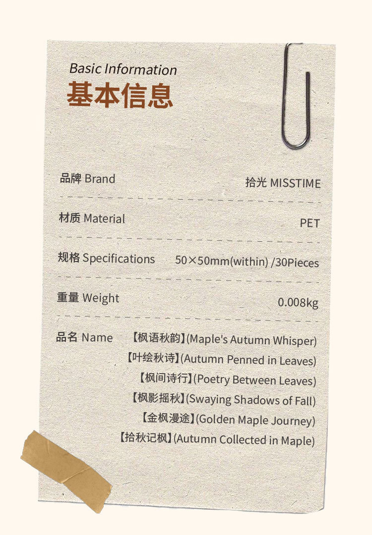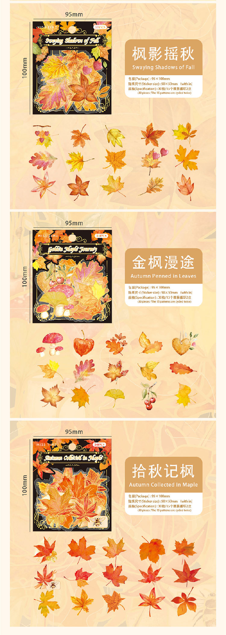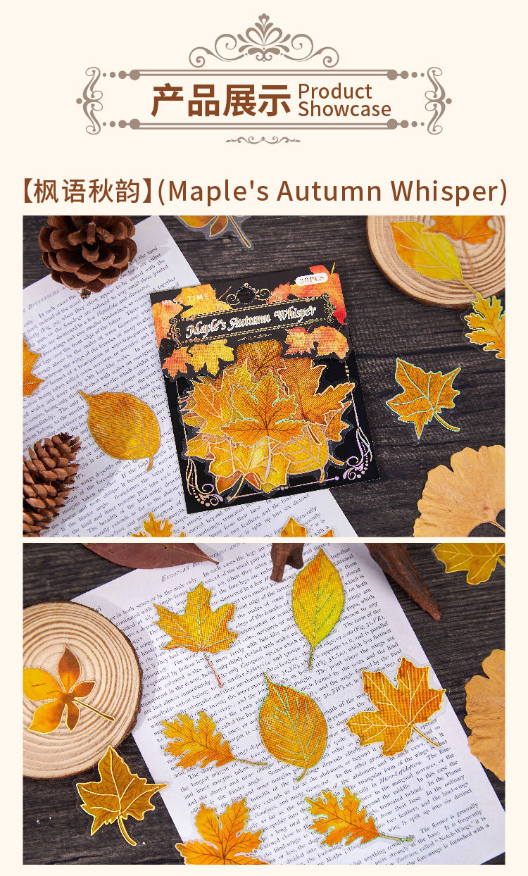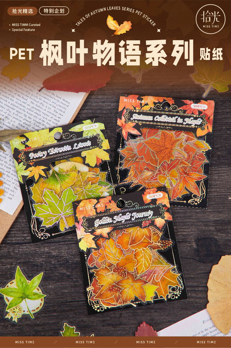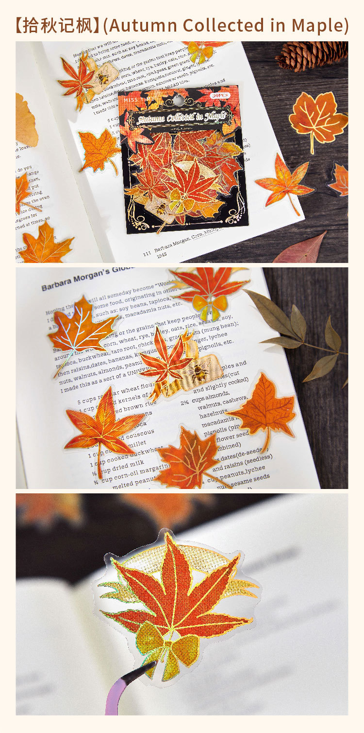 拾光PET贴纸包 枫叶物语系列 复古枫叶烫金手账素材模切贴纸贴画