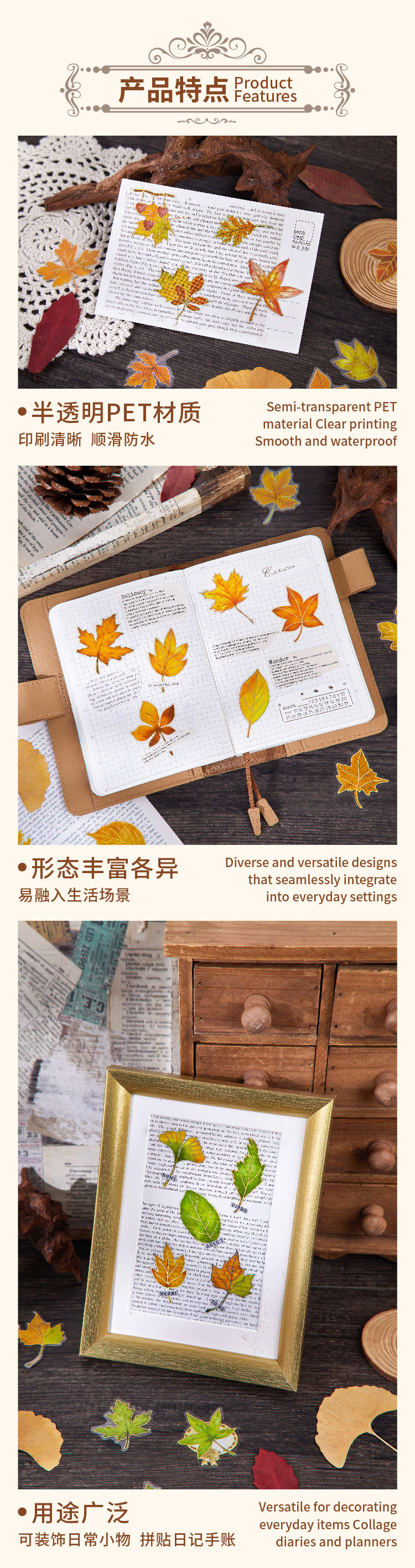 拾光叶子自然丛书系列贴纸包植物秋季落叶手账素材pet贴纸40张入
