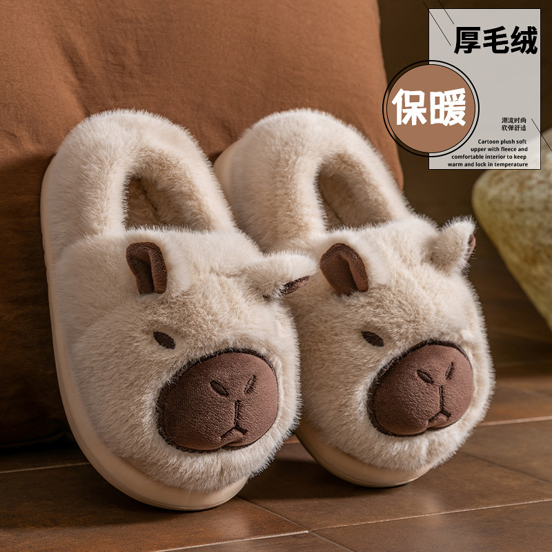 一家三口亲子儿童包跟棉拖鞋秋冬卡皮巴拉男女中大童卡通家居棉鞋