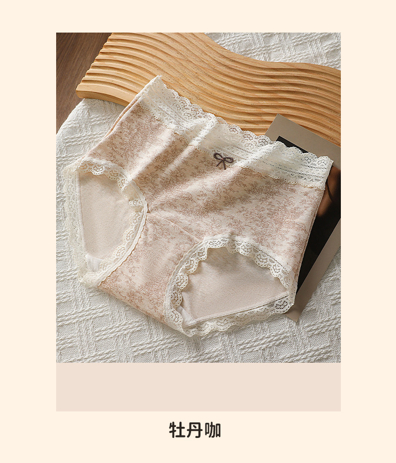 高颜值波点珠光内裤女复古缎面蕾丝花边中高腰舒适加肥大码三角裤