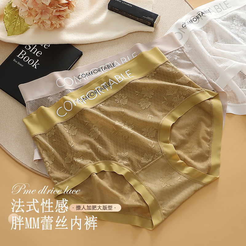 大码内裤女蕾丝无痕字母腰头时尚简约280斤加大码高腰三角裤女士