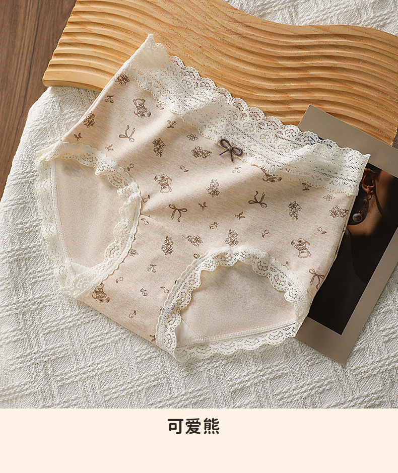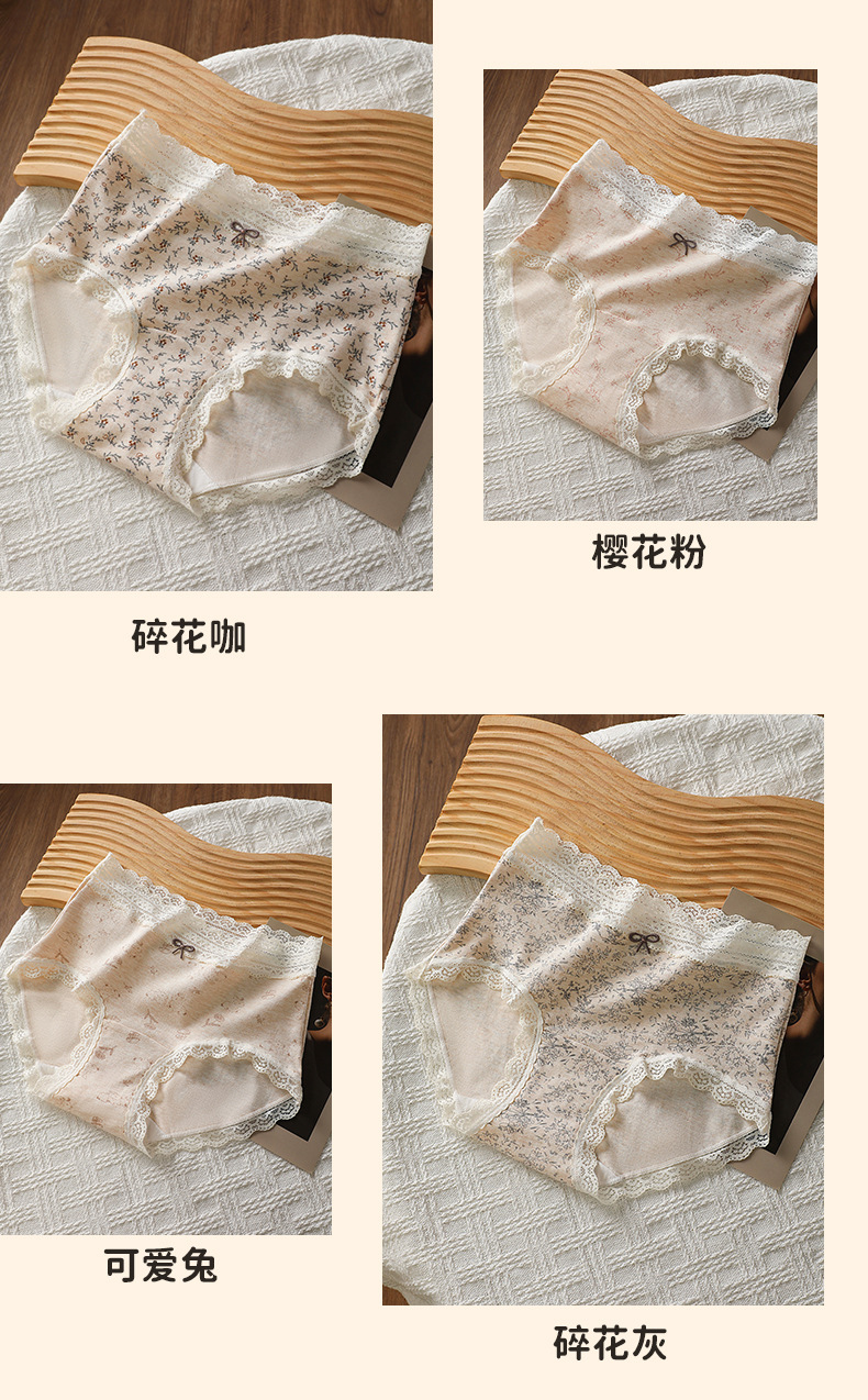简约花海盐系萌物纯棉内裤女高弹加长底裆中腰舒适大码三角裤女士