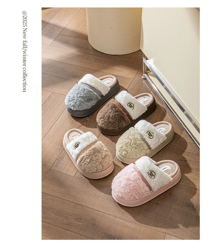 冬季厚底棉拖鞋女居家防滑保暖2025新款式家居加厚毛毛绒拖鞋批发