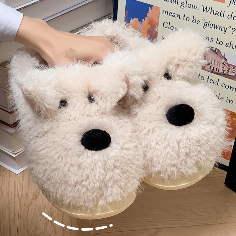 棉拖鞋女生2025新款秋冬季卡通狗狗可爱亲子加绒保暖冬天毛毛拖鞋