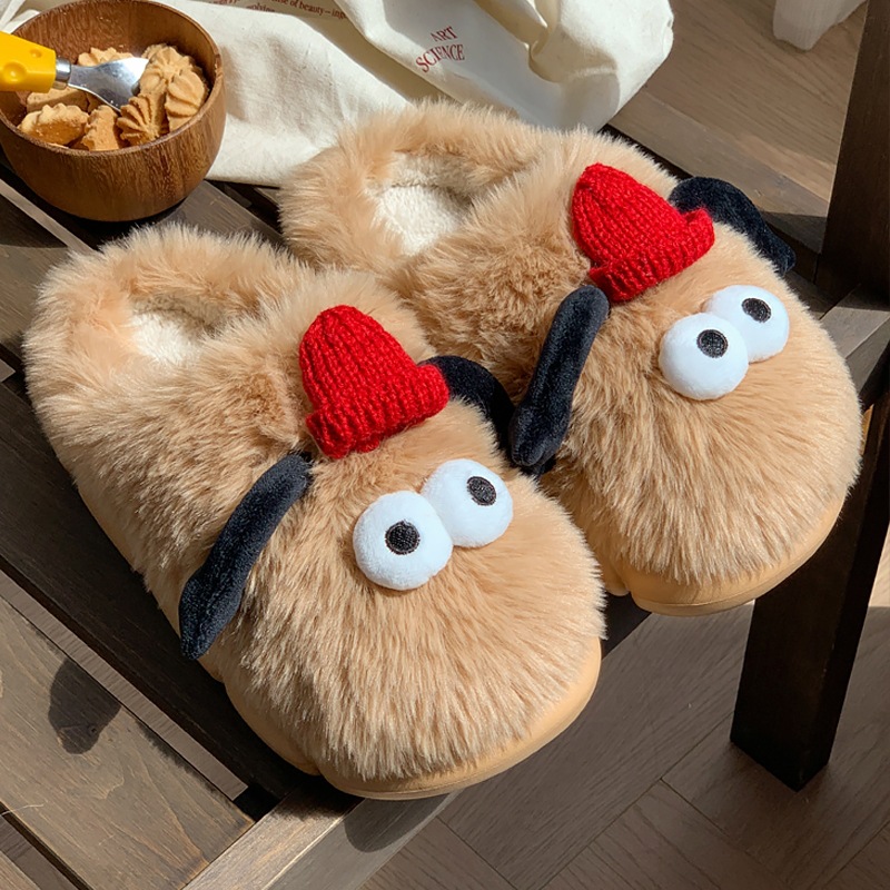 搞怪小狗棉拖鞋男女情侣防滑居家室内保暖可爱加厚毛绒拖鞋秋冬季