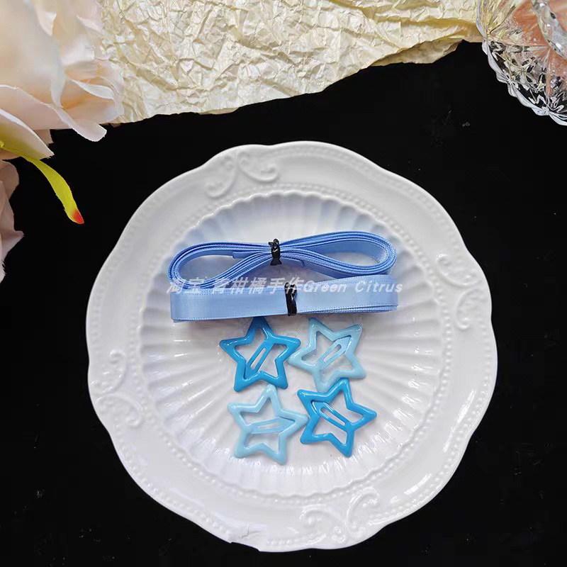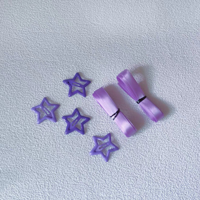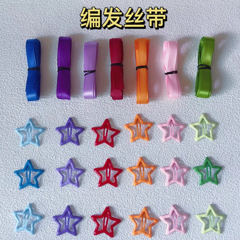 芭蕾风编发丝带演唱会蓝色发带星星发夹紫色绑发飘带应援色头饰女