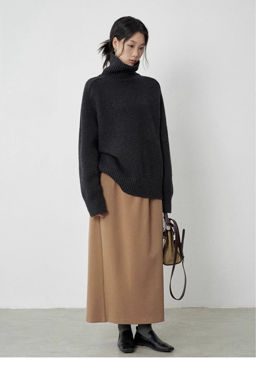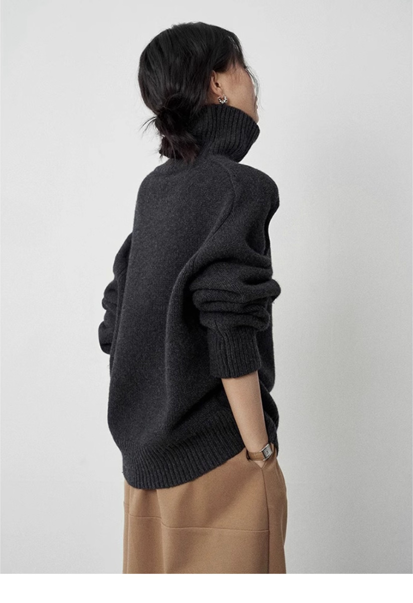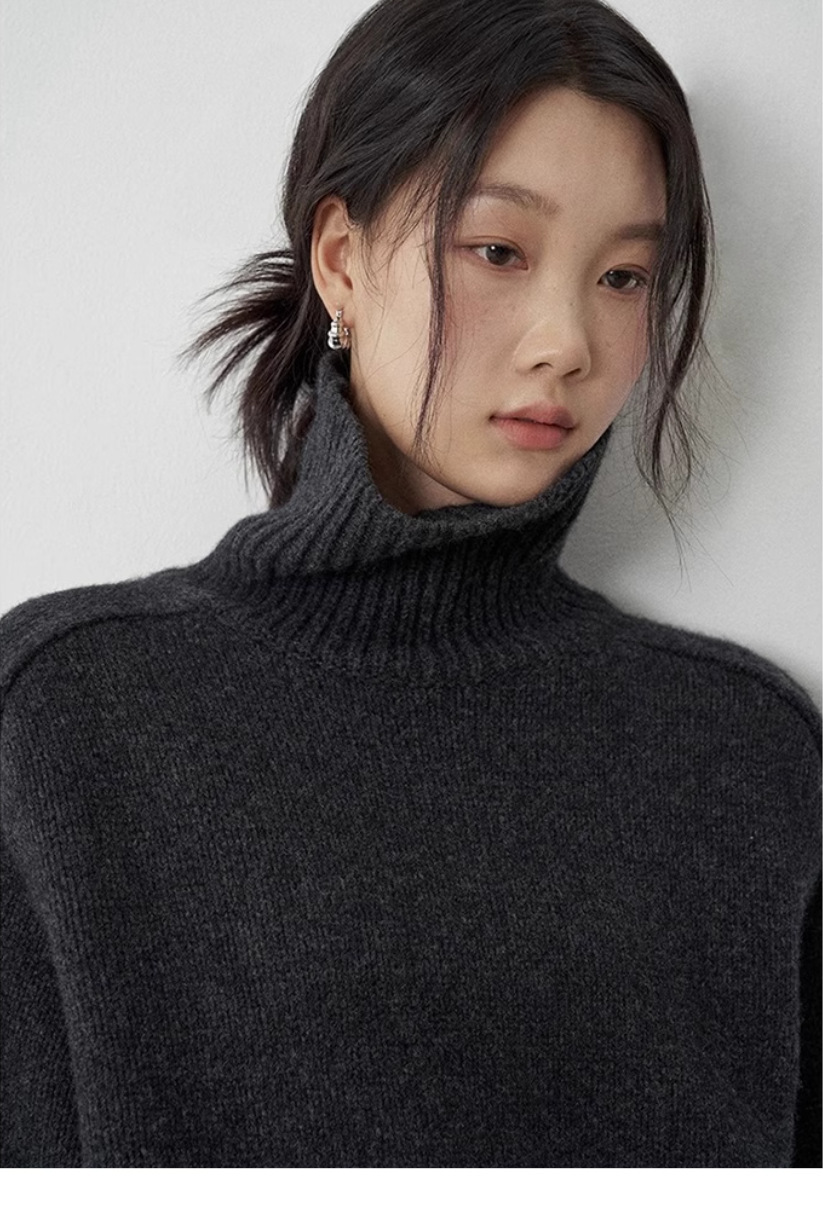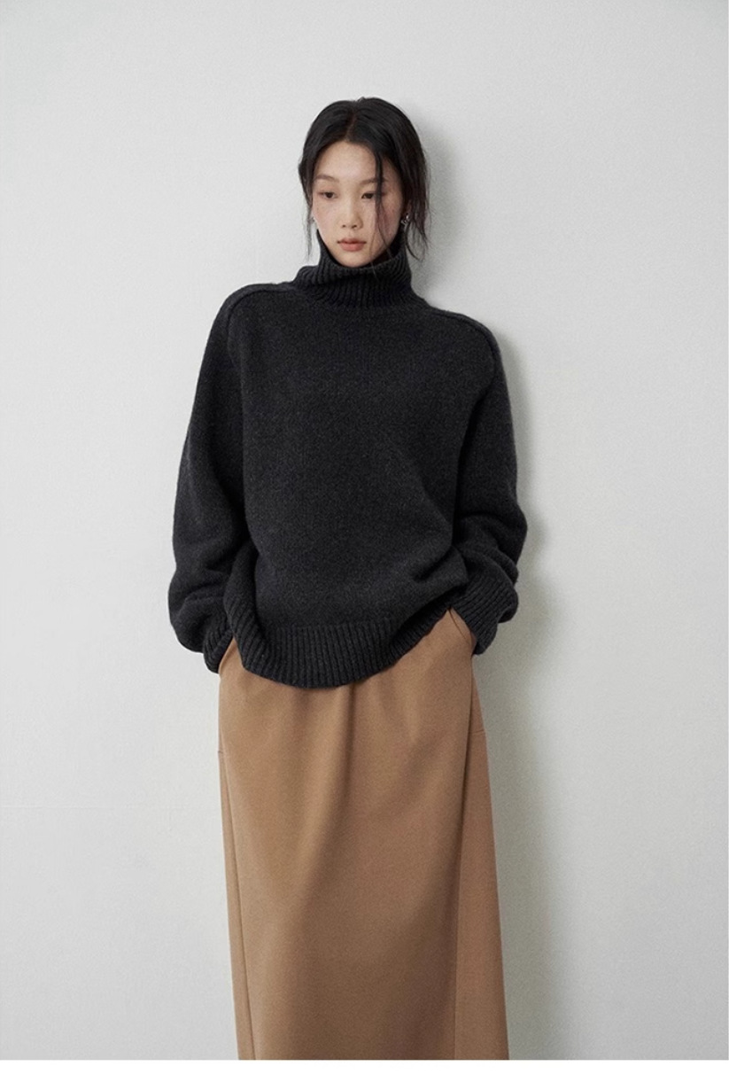 秋冬新款欧货高领羊毛衫女加厚宽松慵懒风毛衣纯色大码针织打底衫