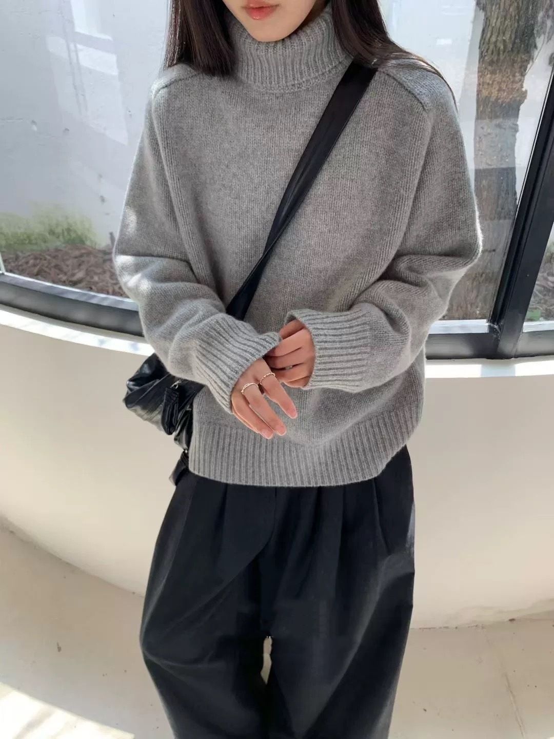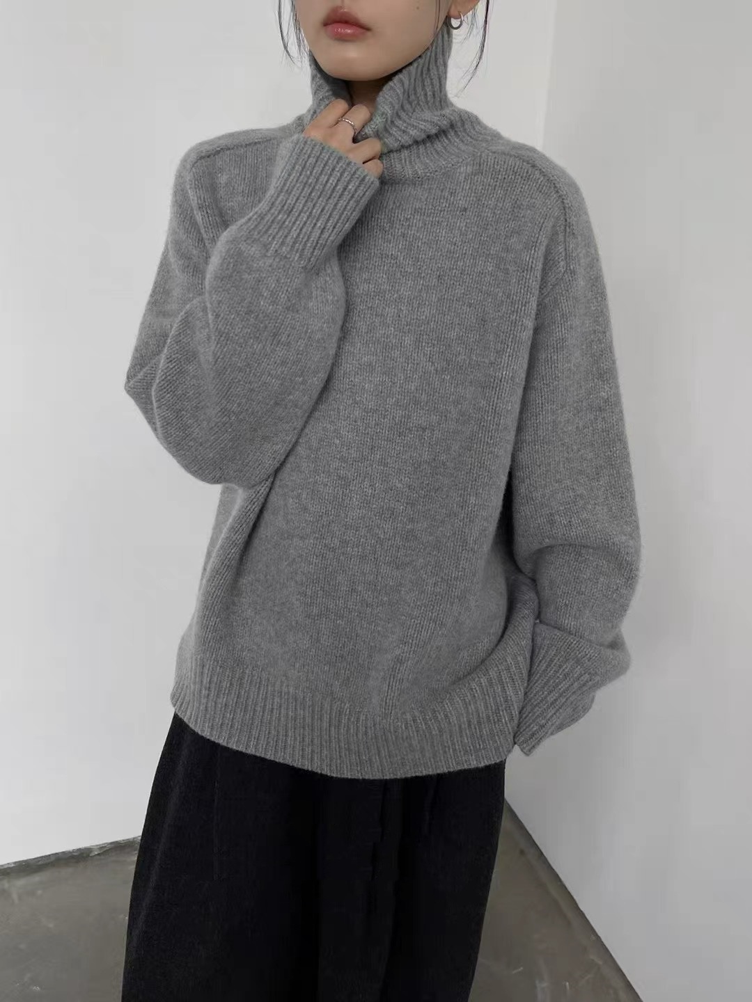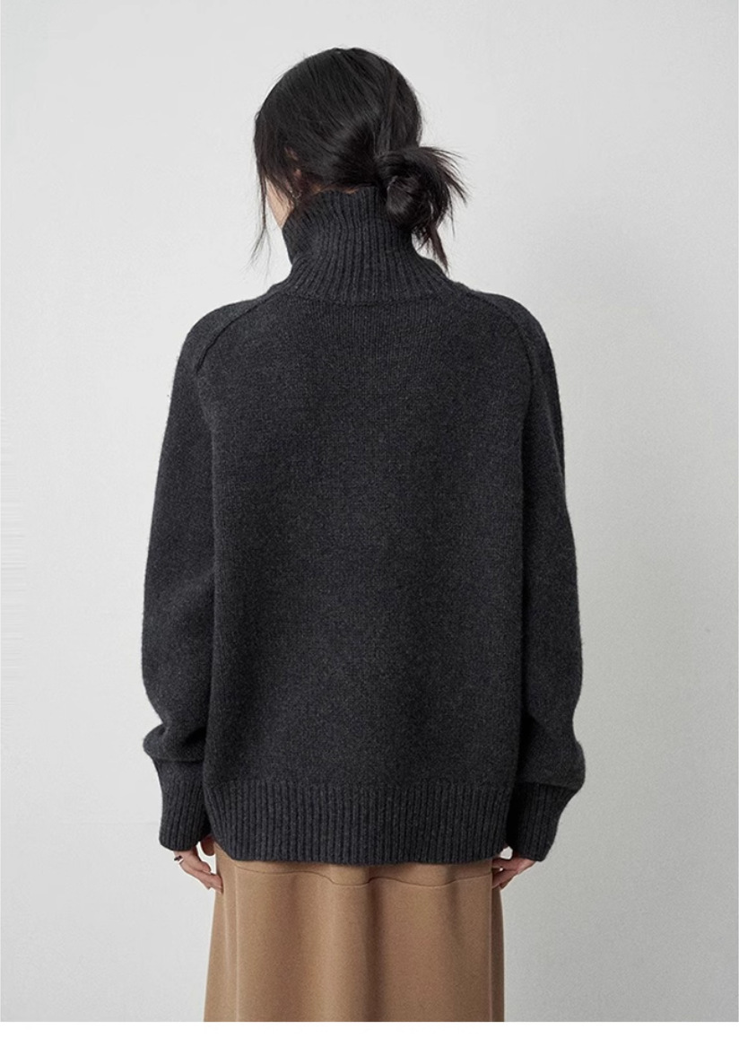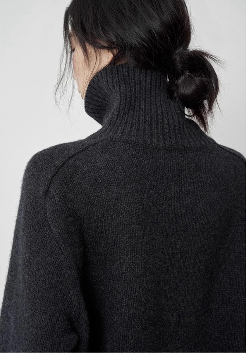 秋冬新款欧货高领羊毛衫女加厚宽松慵懒风毛衣纯色大码针织打底衫