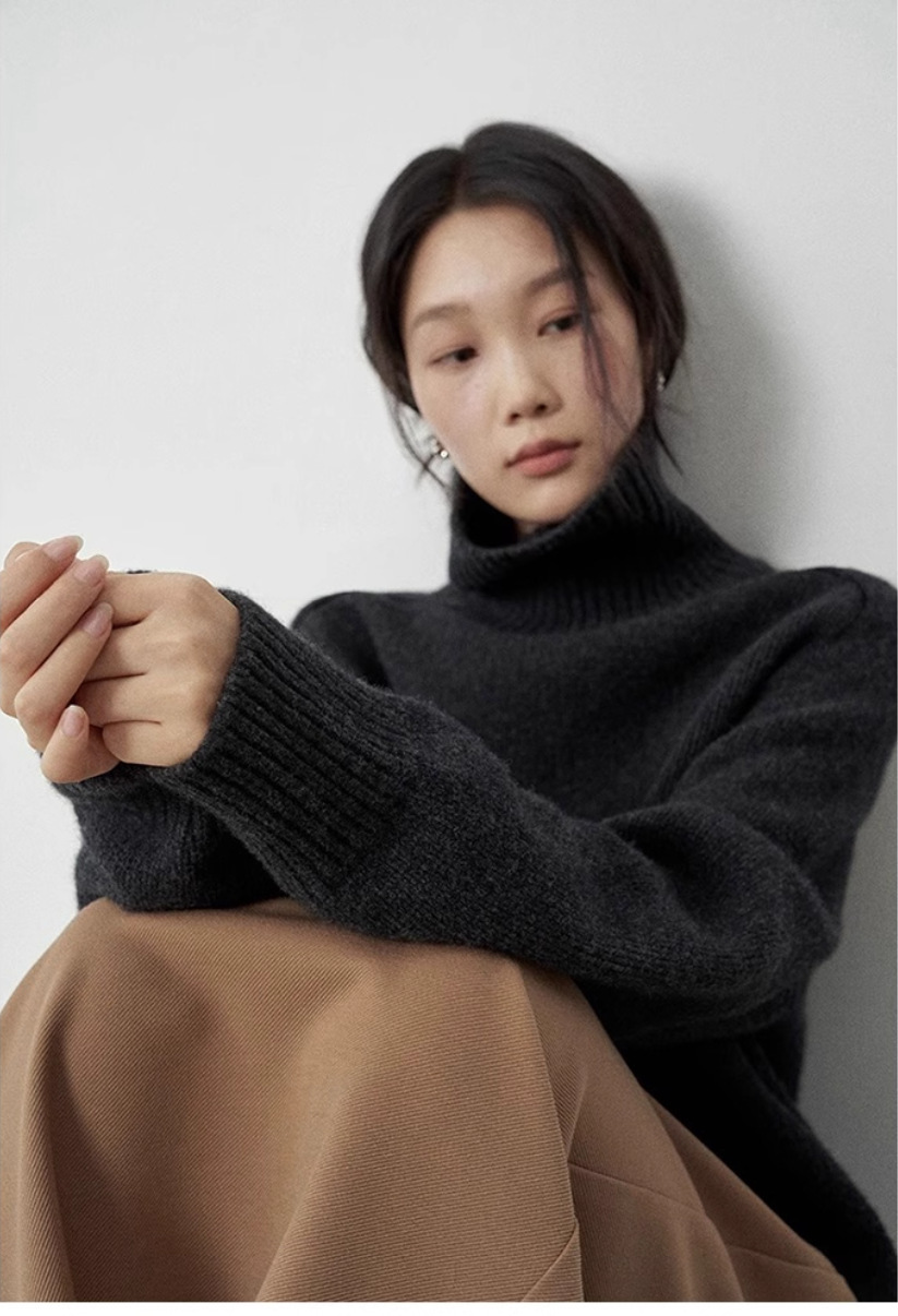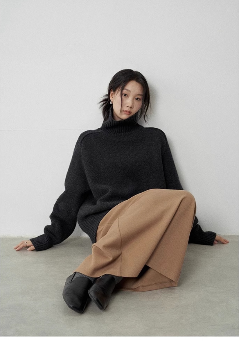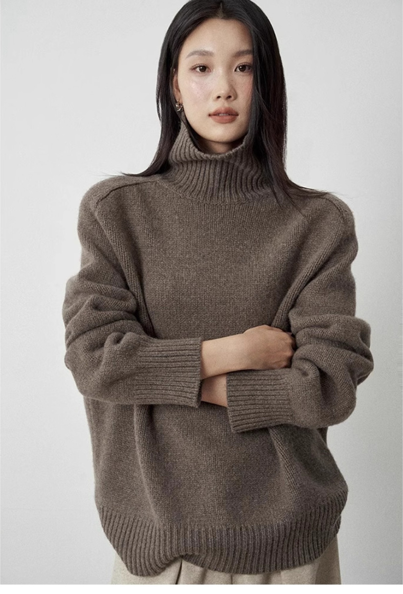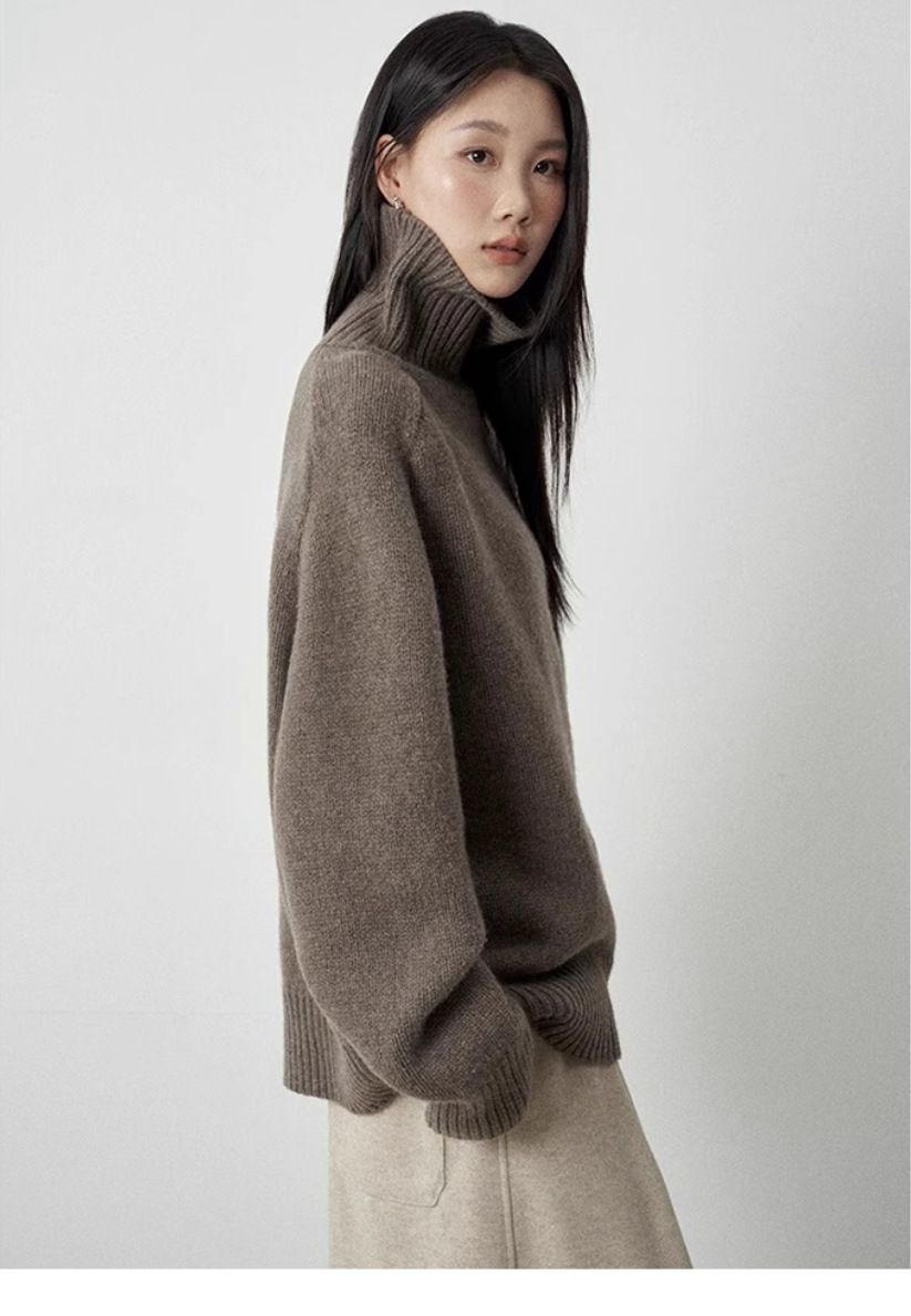 今年流行咖色软糯高领100纯羊毛衫加厚毛衣女宽松针织羊绒打底衫