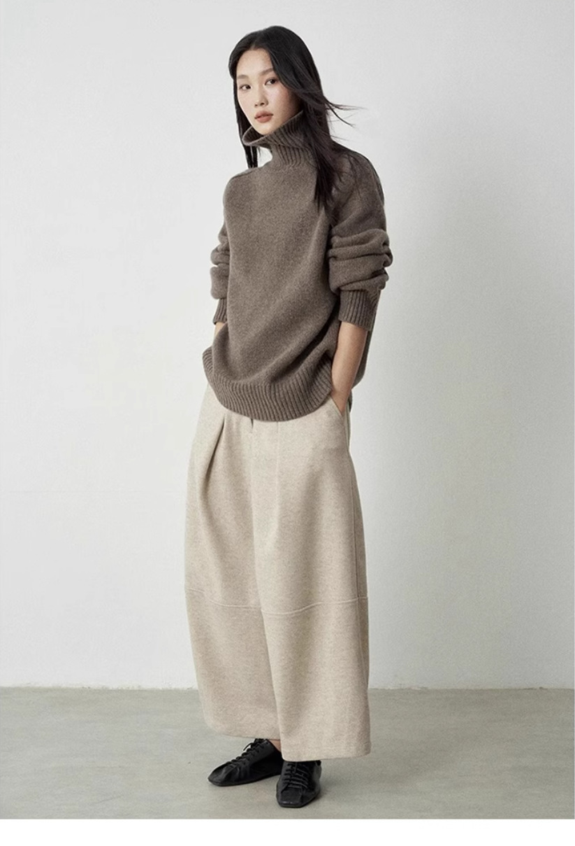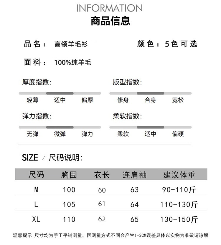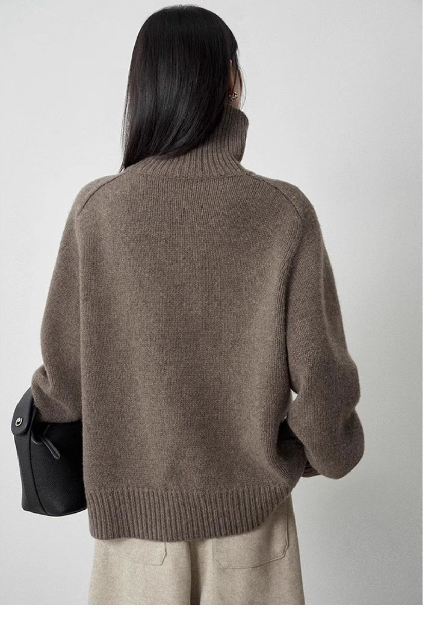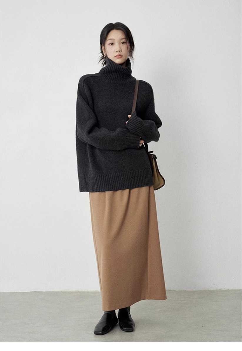 今年流行咖色软糯高领100纯羊毛衫加厚毛衣女宽松针织羊绒打底衫