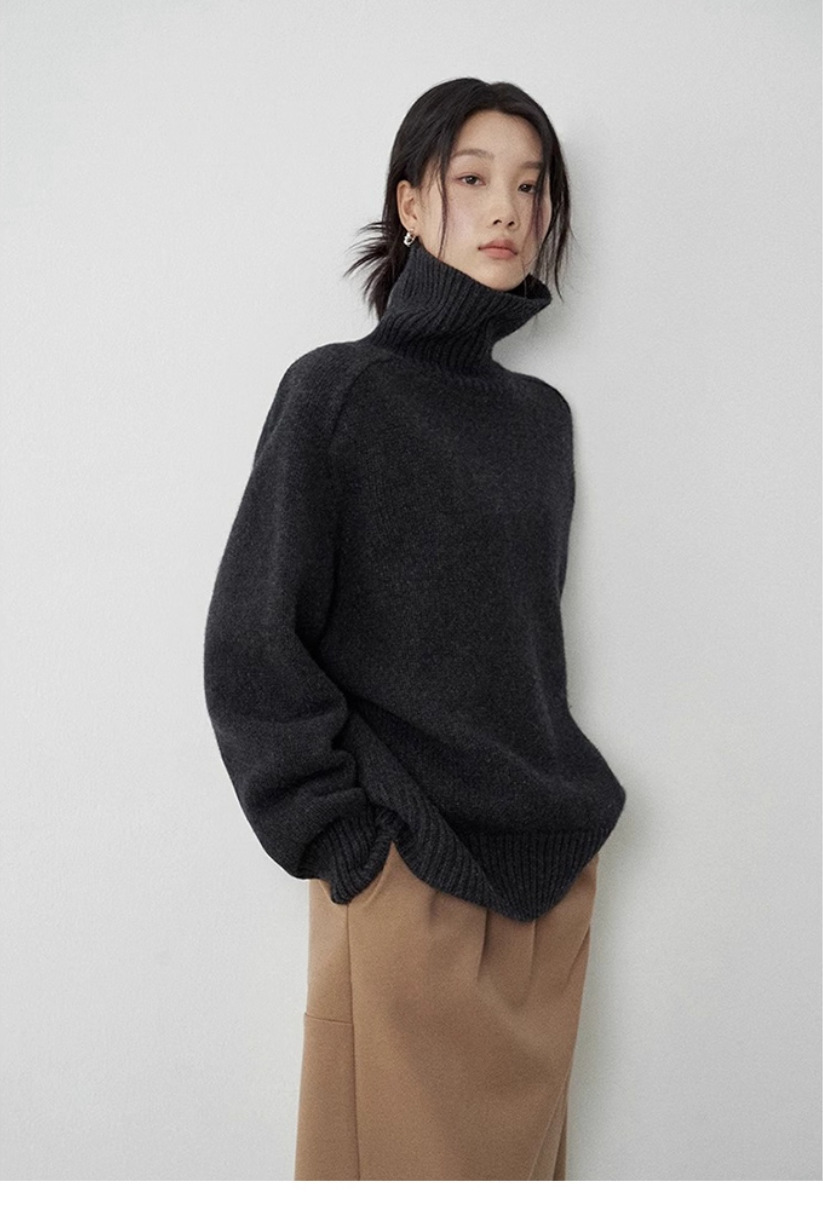 厚手のハイネックウールセーター、女性用、ゆったりとした厚手の秋冬韓国風ベースレイヤーカシミヤプルオーバーセーター、ゆったりとしたニットセーター