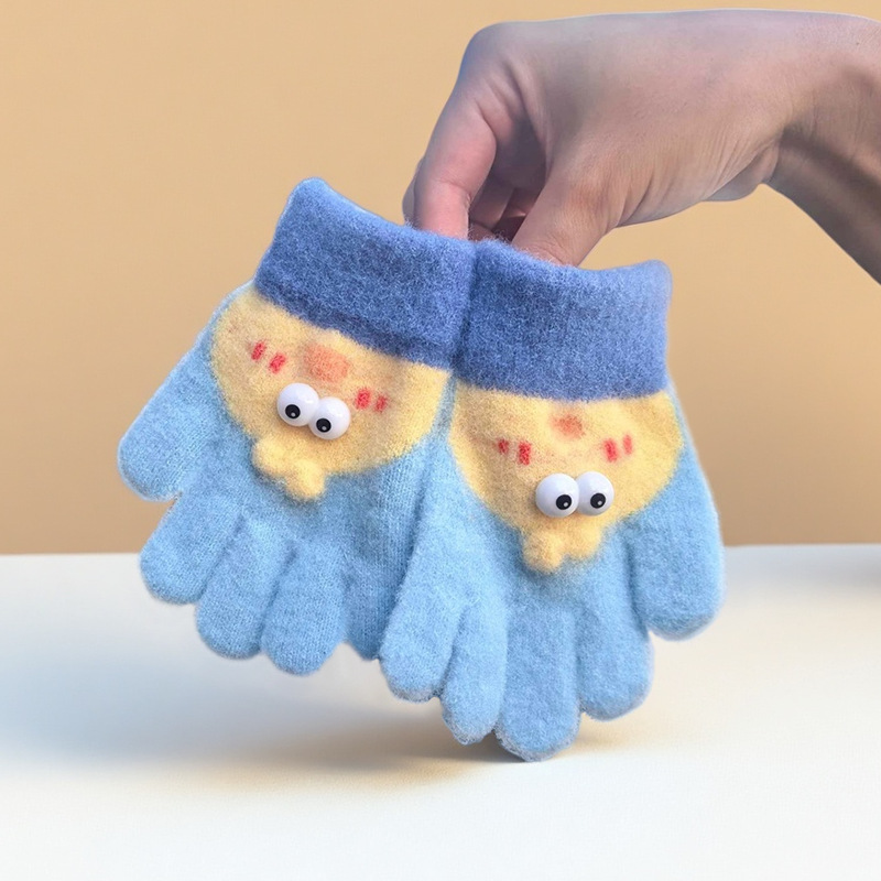 子供用手袋冬かわいい漫画ニット毛糸男女子供5本指子供保温防寒3-8歳