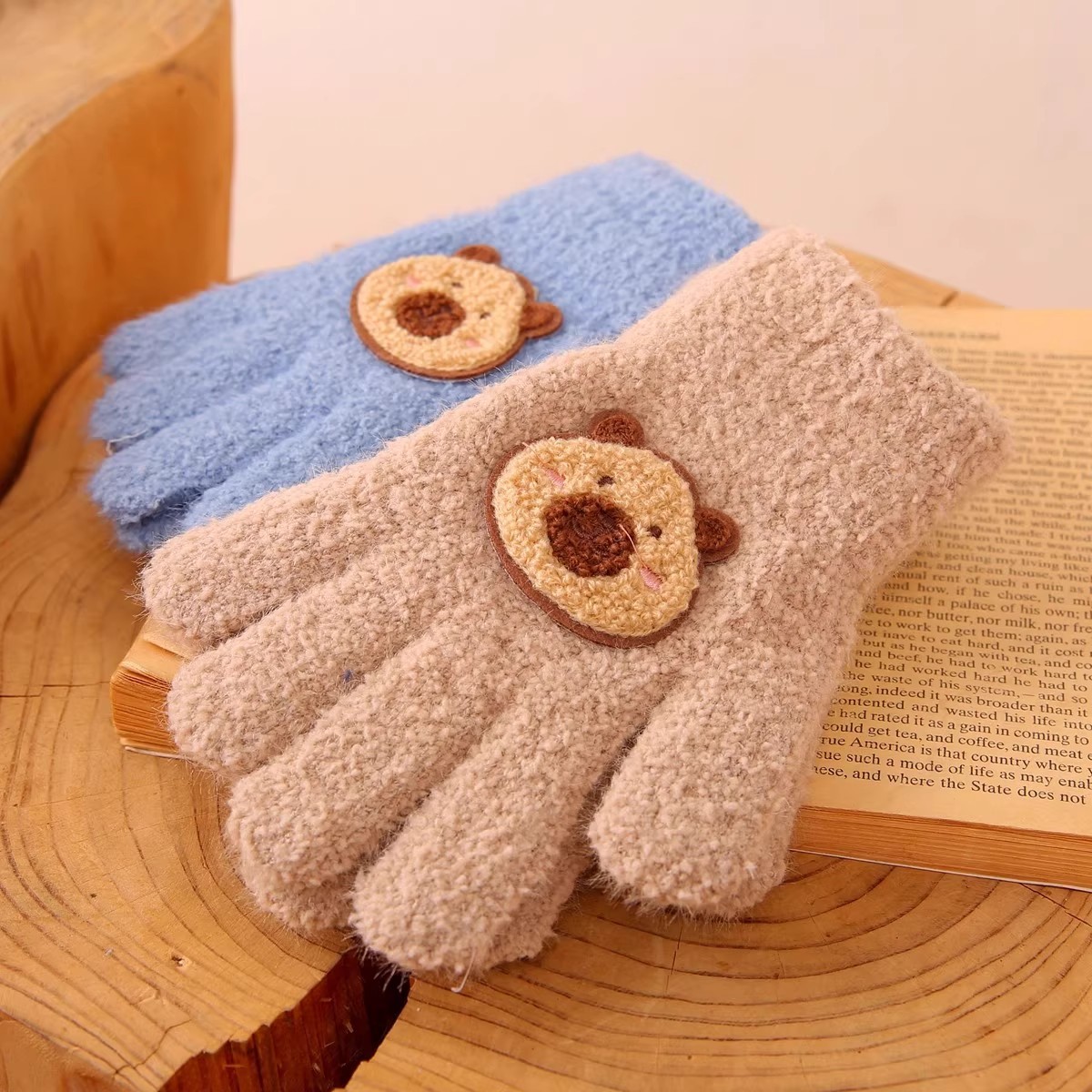 毛糸手袋冬の女性は日本の保温がかわいいベアーins五指が冬の防寒に触れることができる