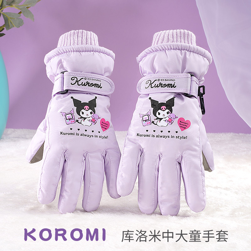 クロミ子供スキー手袋冬保温女の子ベルベット厚い防水漫画游雪手袋中大きい子供
