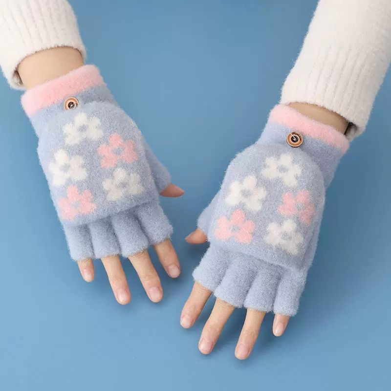 子供の秋と冬暖かい豪華な厚みのあるハーフフィンガーレスライティングジャカード暖かい学生ハーフフィンガーフリップアップ手袋