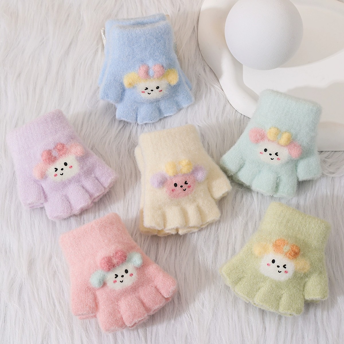 子供用カバーリング手袋秋冬の5本指の半分の指の露指のニット漫画の男女の子供の赤ちゃんの保温とベルベットの保温