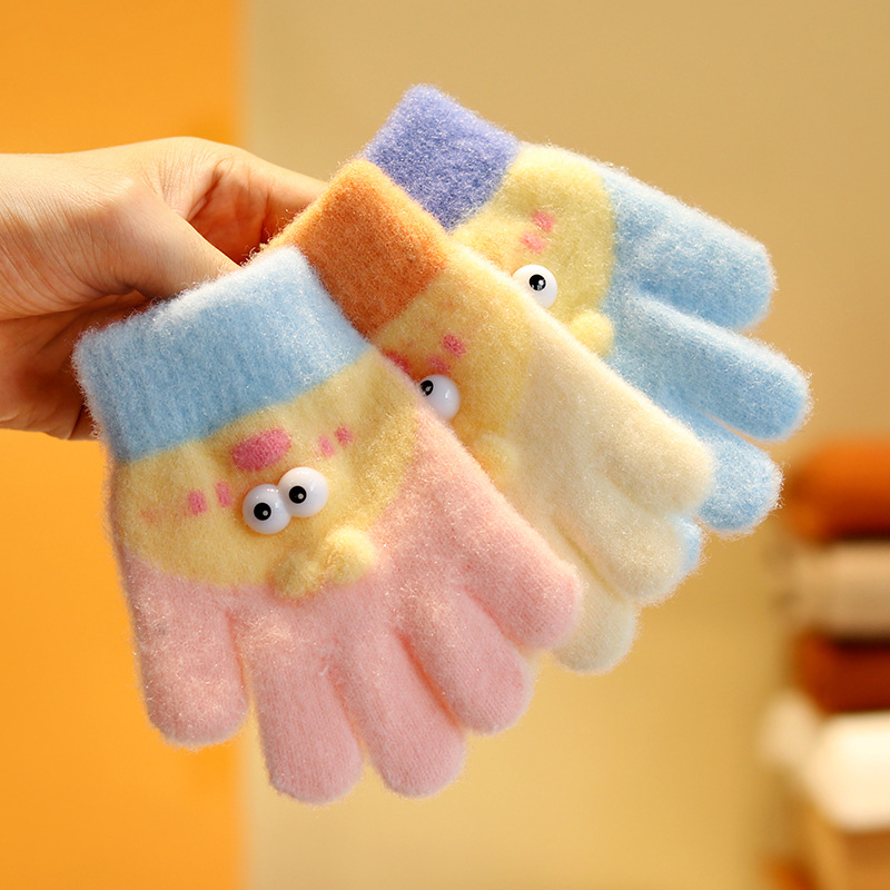 子供の手袋の薄いタイプの男の子の赤ちゃんの男の子の女の子の冬の女の子は5本の指の保温の笑顔の小学生の冬を指します。