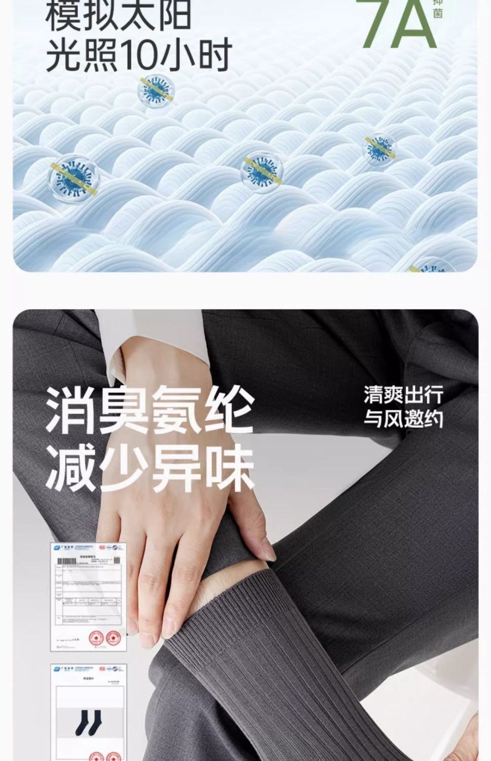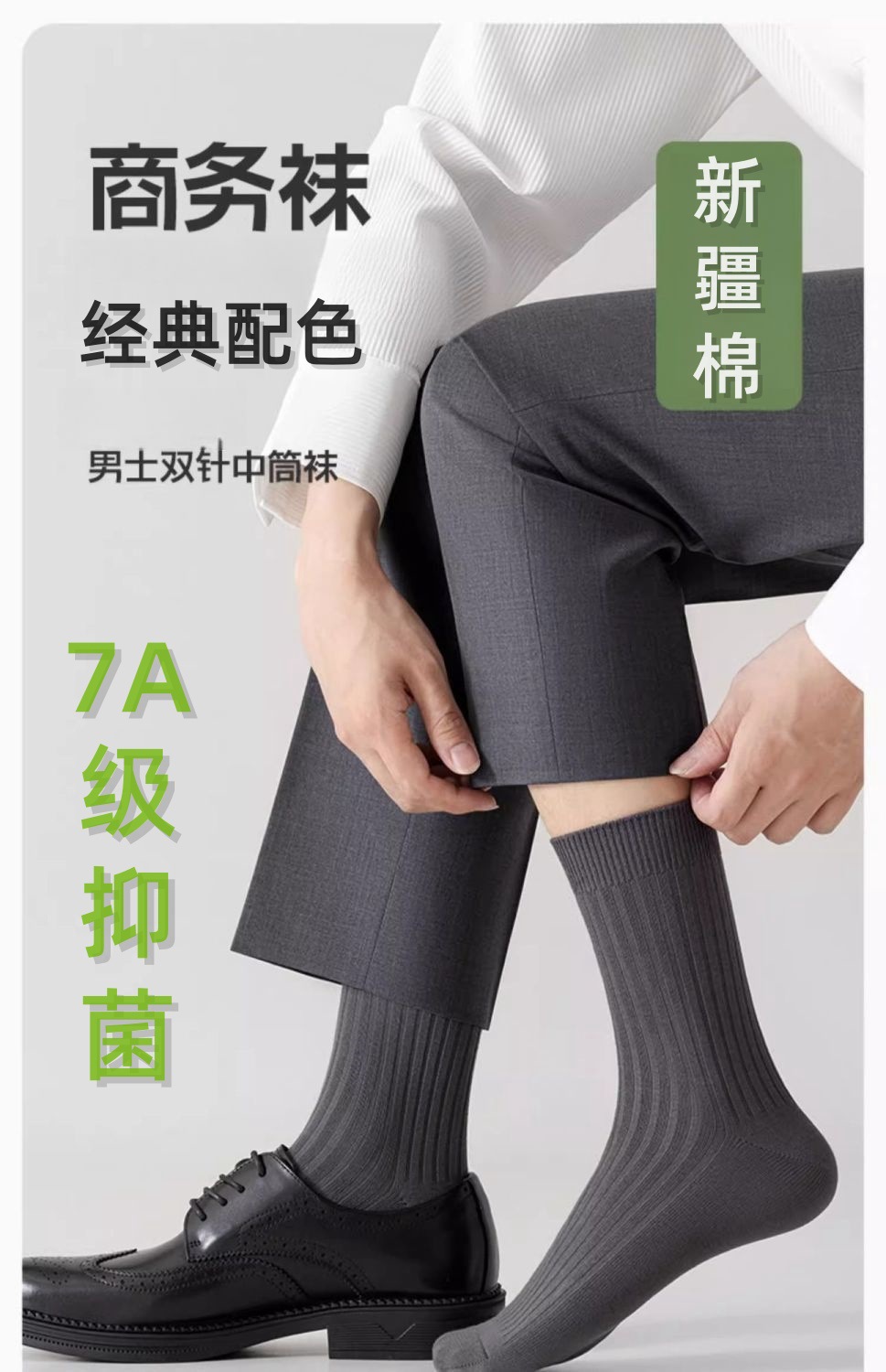 7A抗菌袜子男秋冬款中筒棉袜纯色运动袜防臭吸汗抗菌新疆棉长筒袜