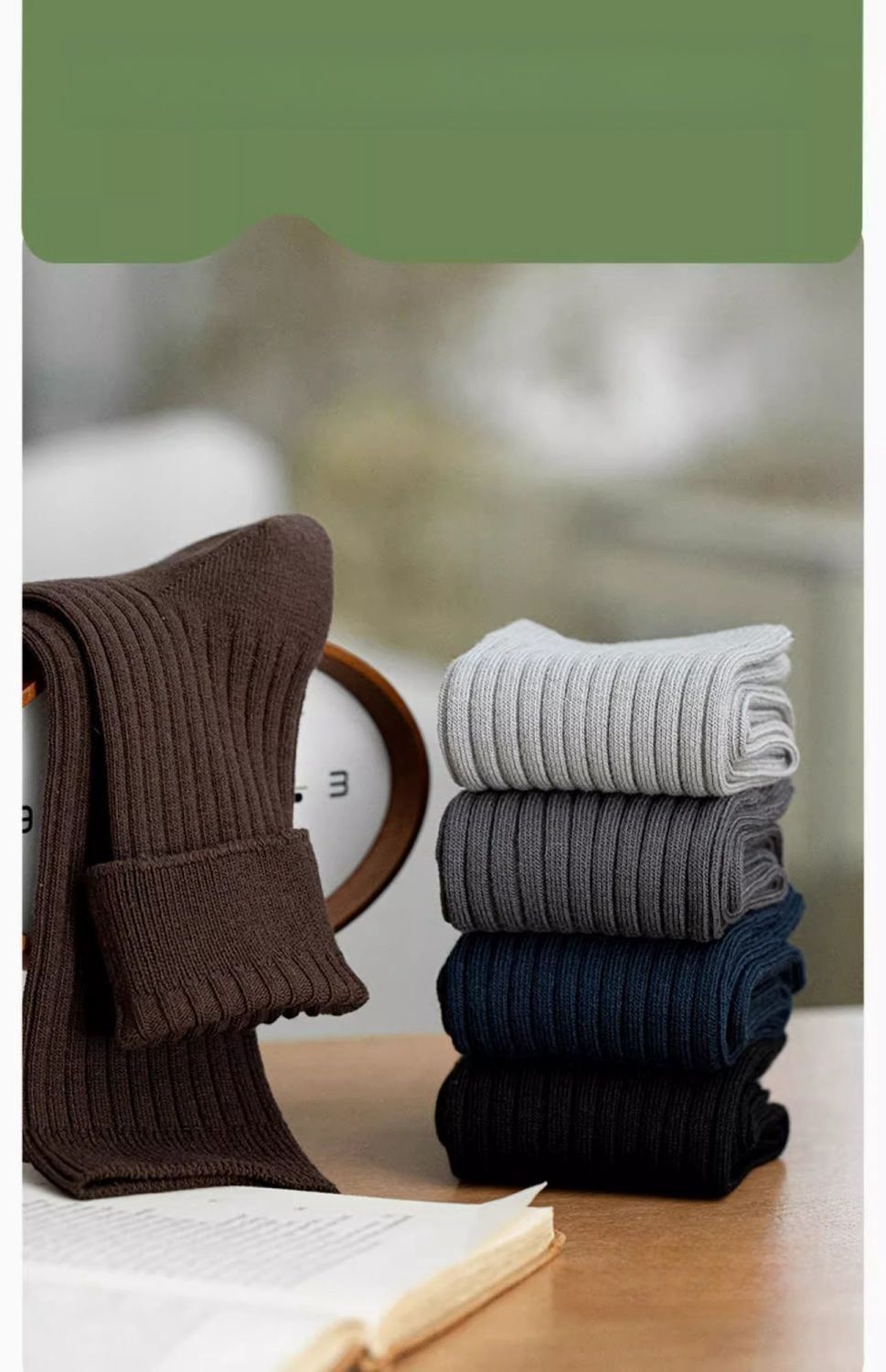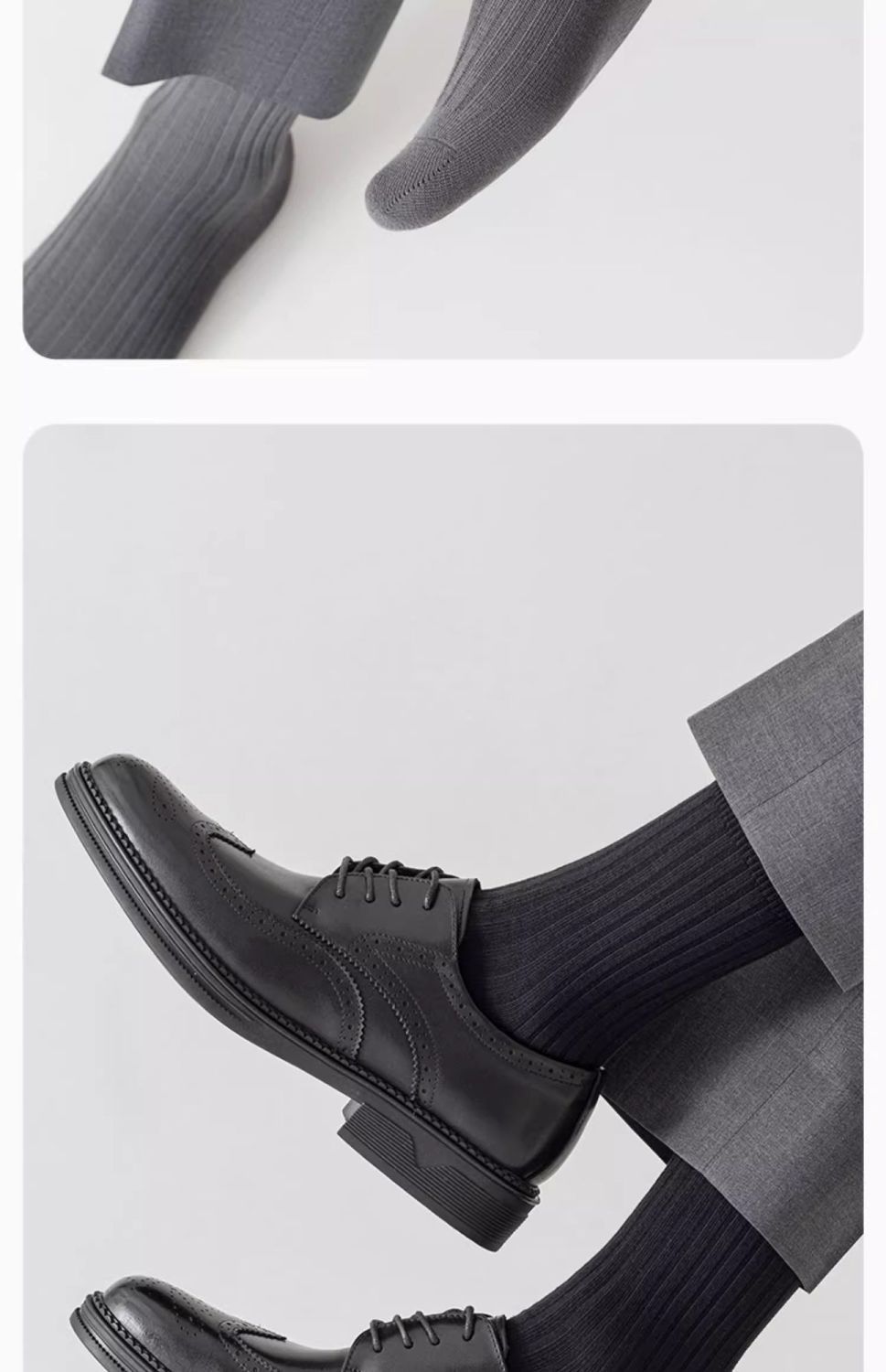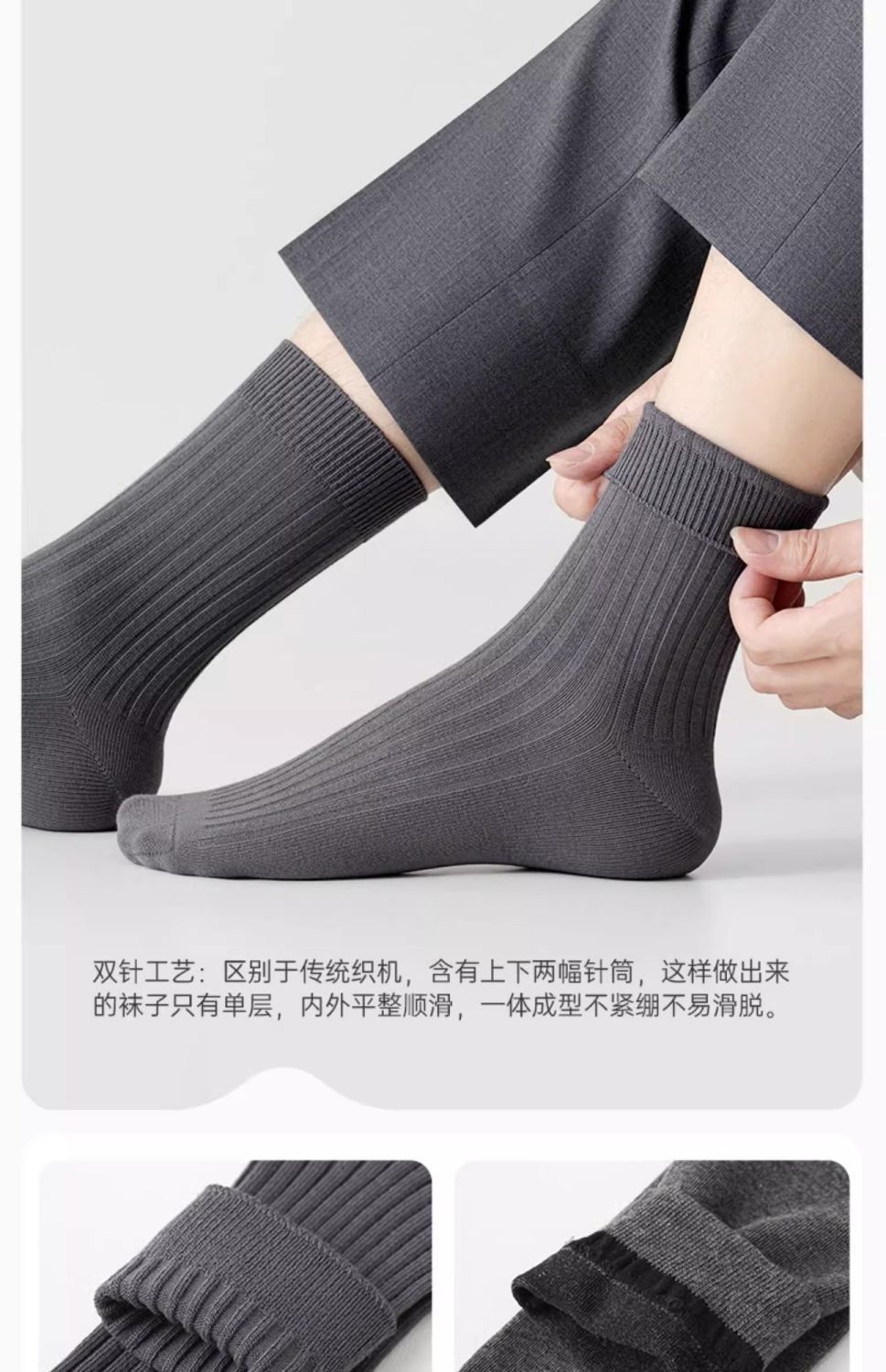 纯色竖条针袜子全棉 吸汗防臭纯棉商务中筒长男士白黑纯色竖条棉秋冬加厚双针袜子全棉