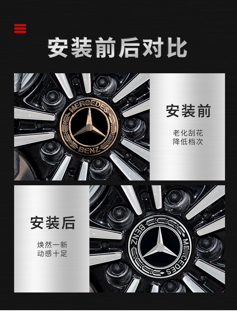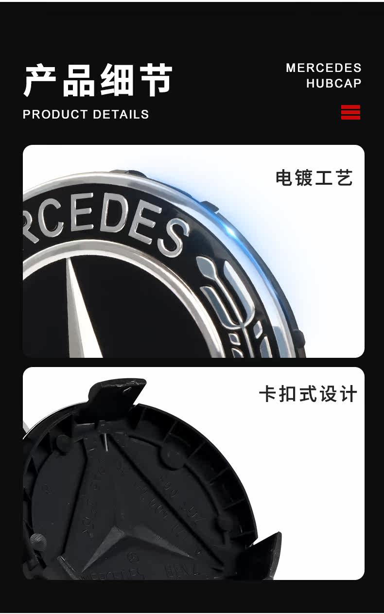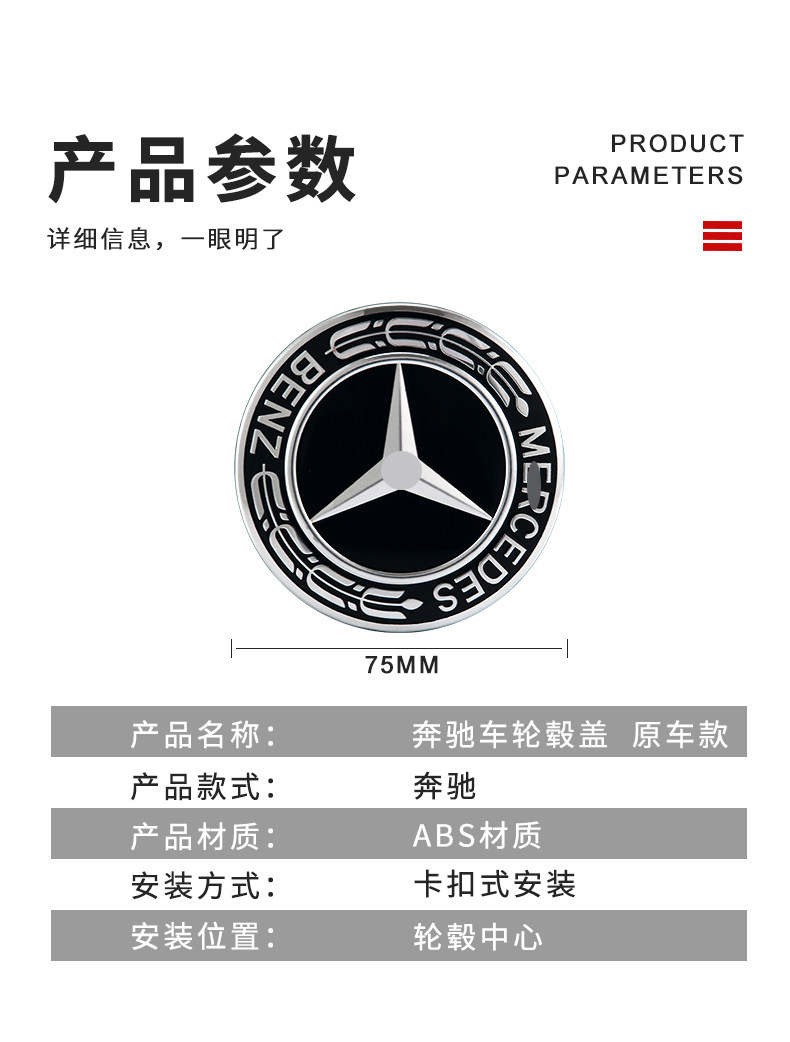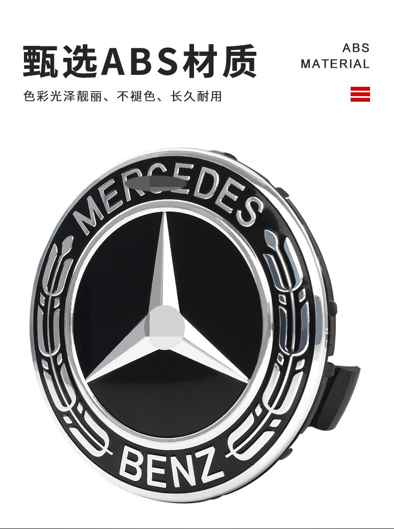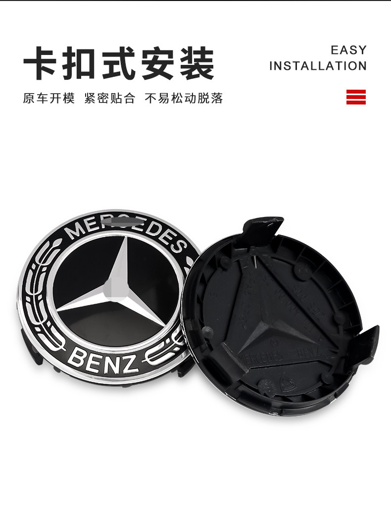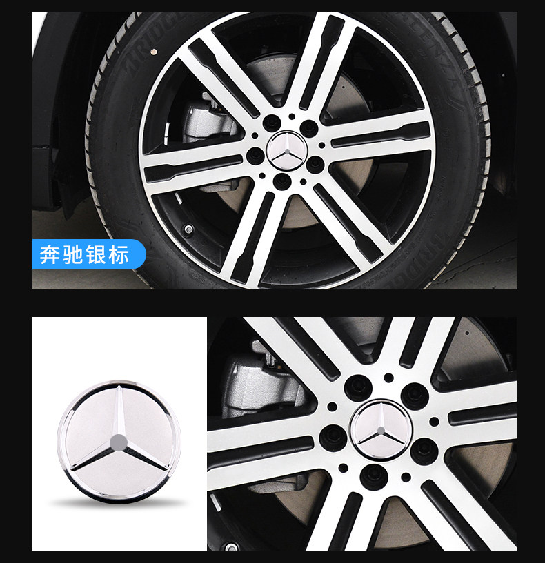 奔驰E级C级A级75mm悬浮轮毂中心盖车标 GLS ML改装轮毂盖标适用