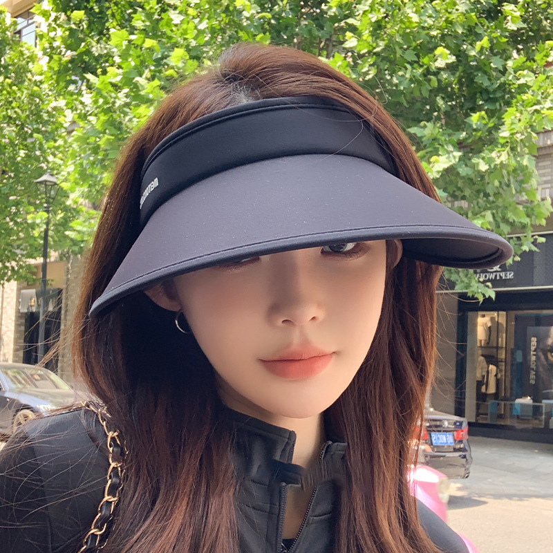 女性用空頂日よけ帽子、夏用アイスシルク、紫外線防止、屋外UVカットフェイスカバー日よけ帽子、黒の大きなつばの日よけ帽子