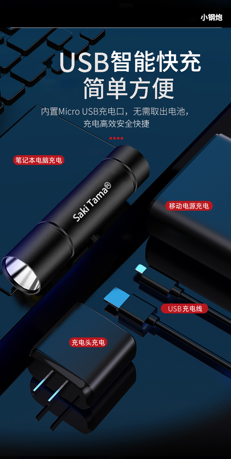 高亮度超亮手电筒强光充电户外激光家用迷你便携耐用多功能长续航