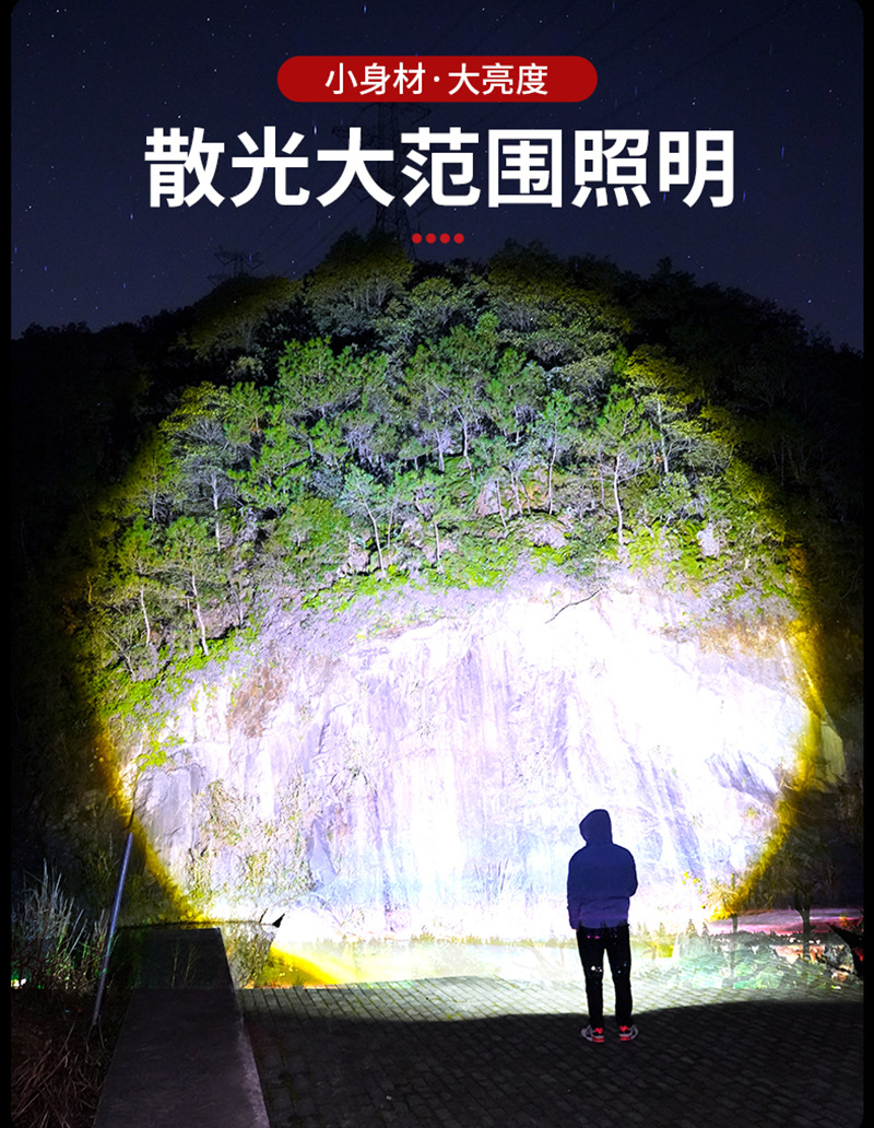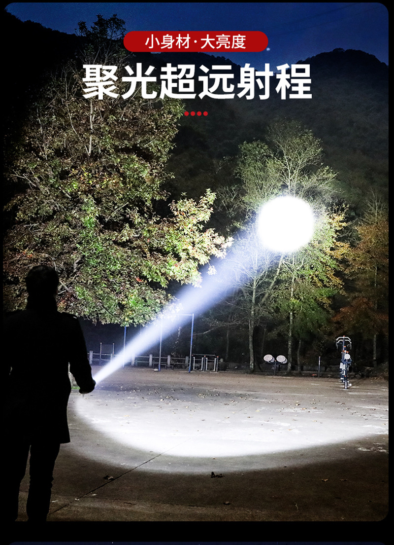 强光手电筒变焦超亮长续航穿天家用小型便携式军户外家专用应急灯