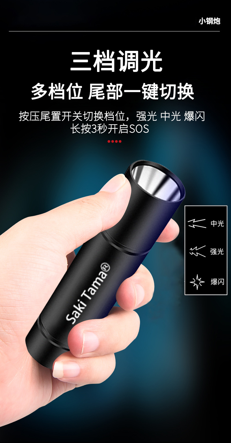 手电筒强光超亮充电超长续航家用户外应急可携式多功能小手