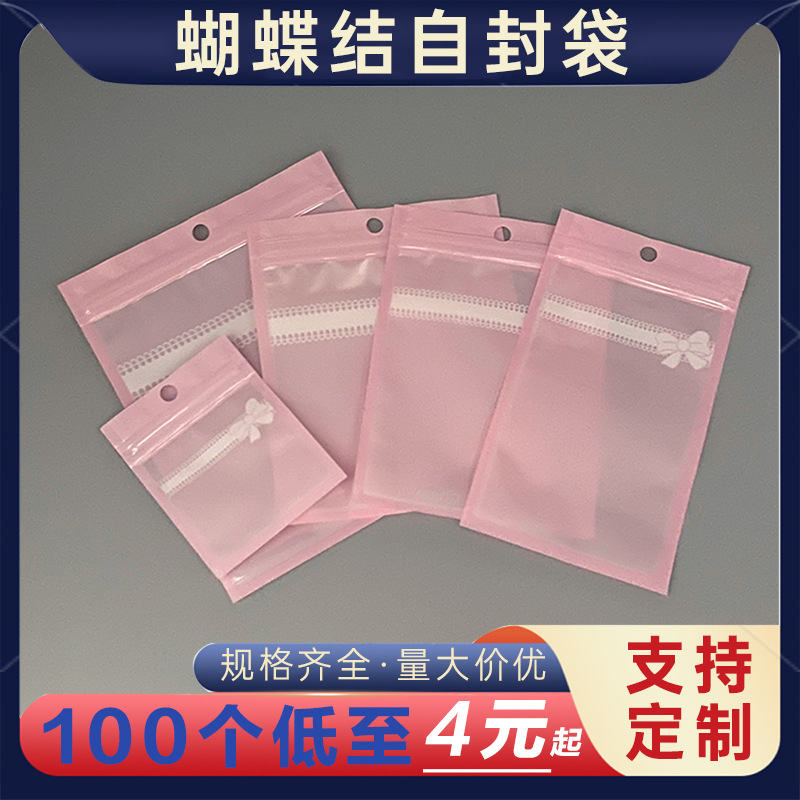 ネックレスアクセサリー密封自封袋ピンク蝶ネクタイパフ化粧品包装袋イヤリング酸化防止ビニール袋