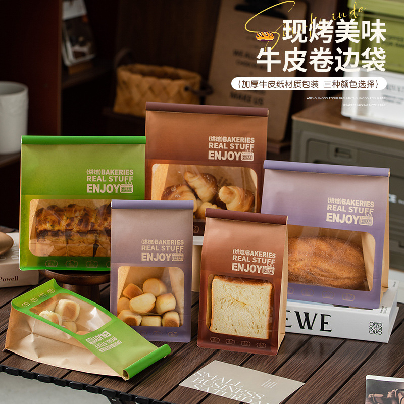 面包包装袋面包袋铁丝卷边八边封牛皮纸透明开窗彩印袋烘焙打包袋
