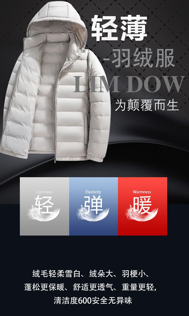 2025秋冬轻薄立领脱卸连帽羽绒服短款90白鸭绒款时尚跨境批发休闲