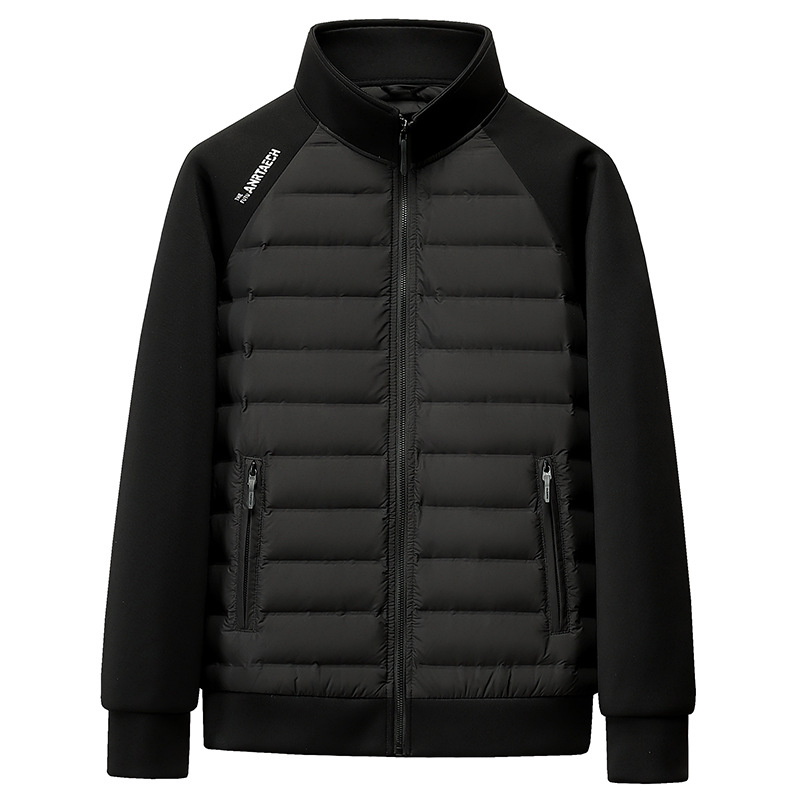 越境卸売可 2025年ニット拼接ホワイトダックダウンメンズスタンドカラー軽量ダウンジャケット秋冬コート