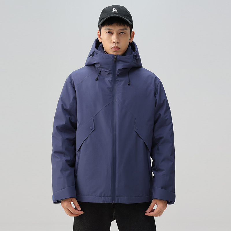 90%グースダウン+取り外し可能なインナーライナーで極寒にも耐える 2025年冬新作 メンズミドル丈スタンドカラーフード付きダウンジャケット