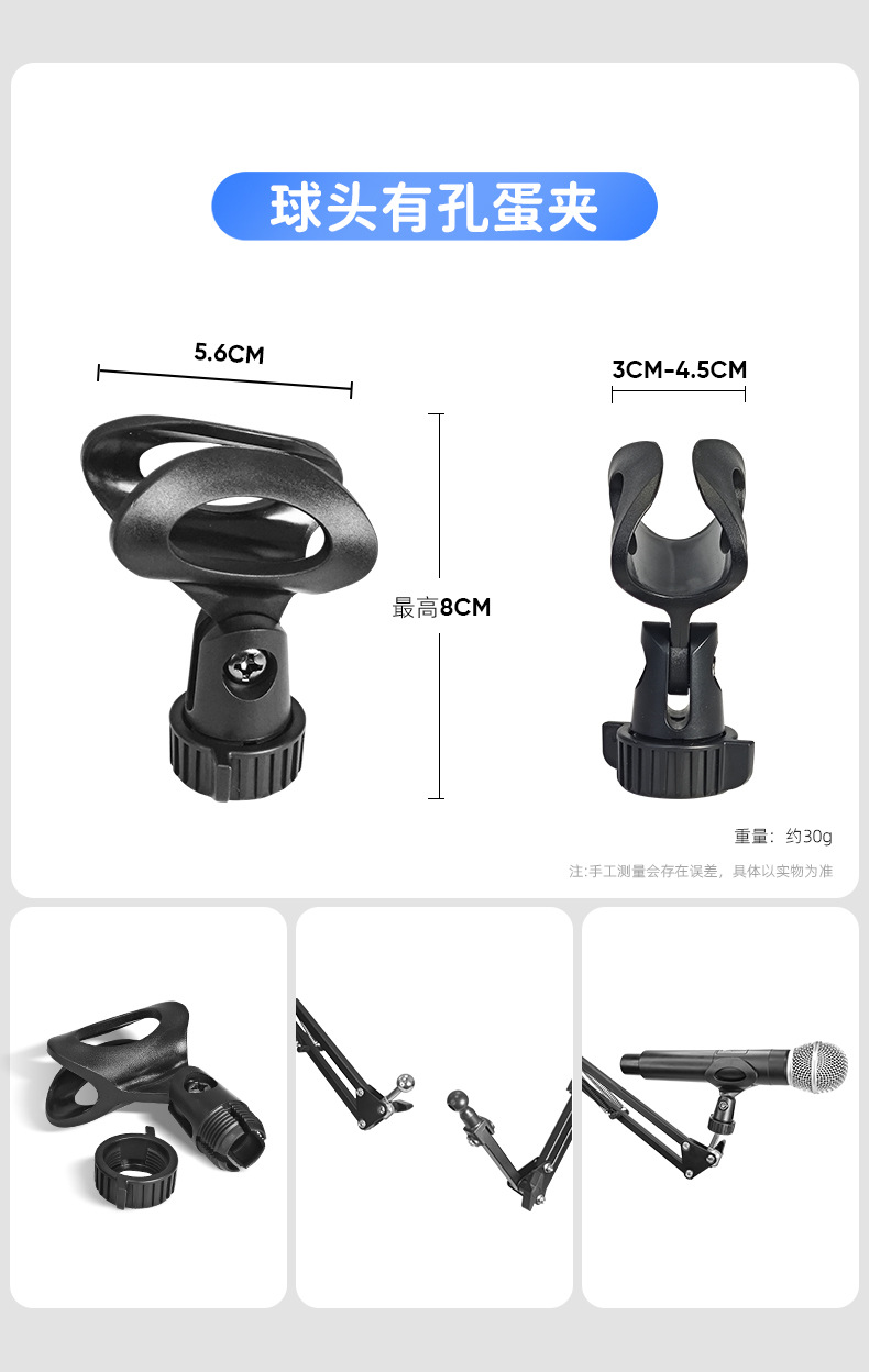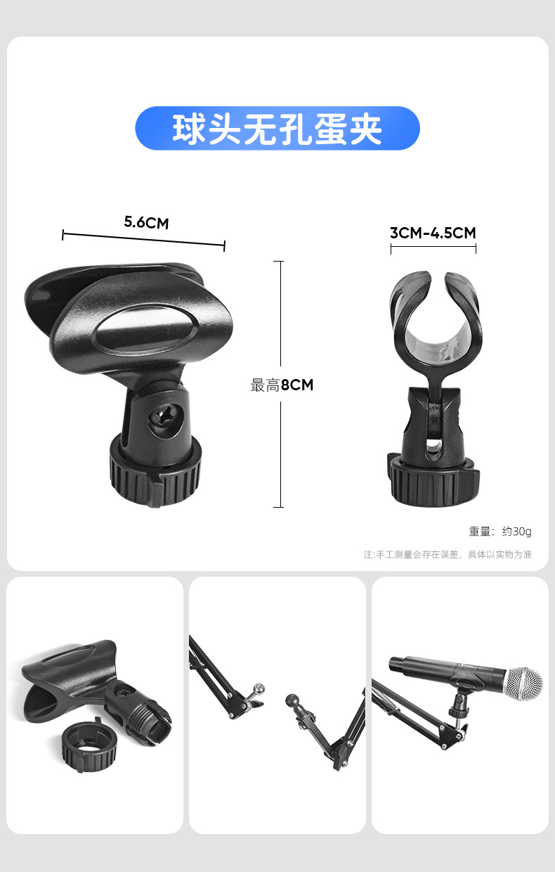 2025新款私模麦克风球头话筒夹 稳固通用U形蛋夹万能夹麦克风夹子