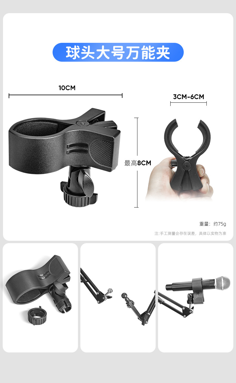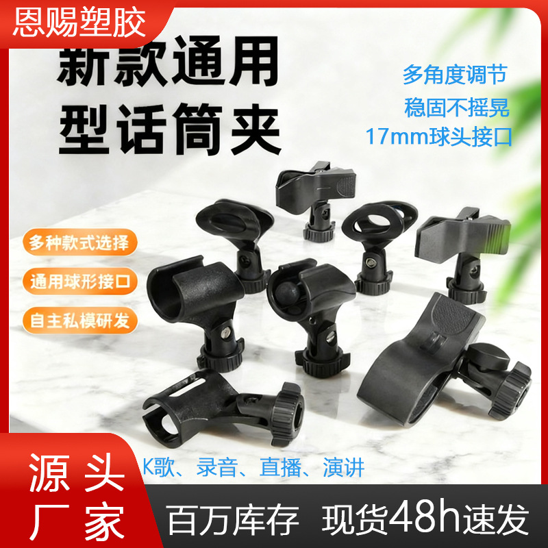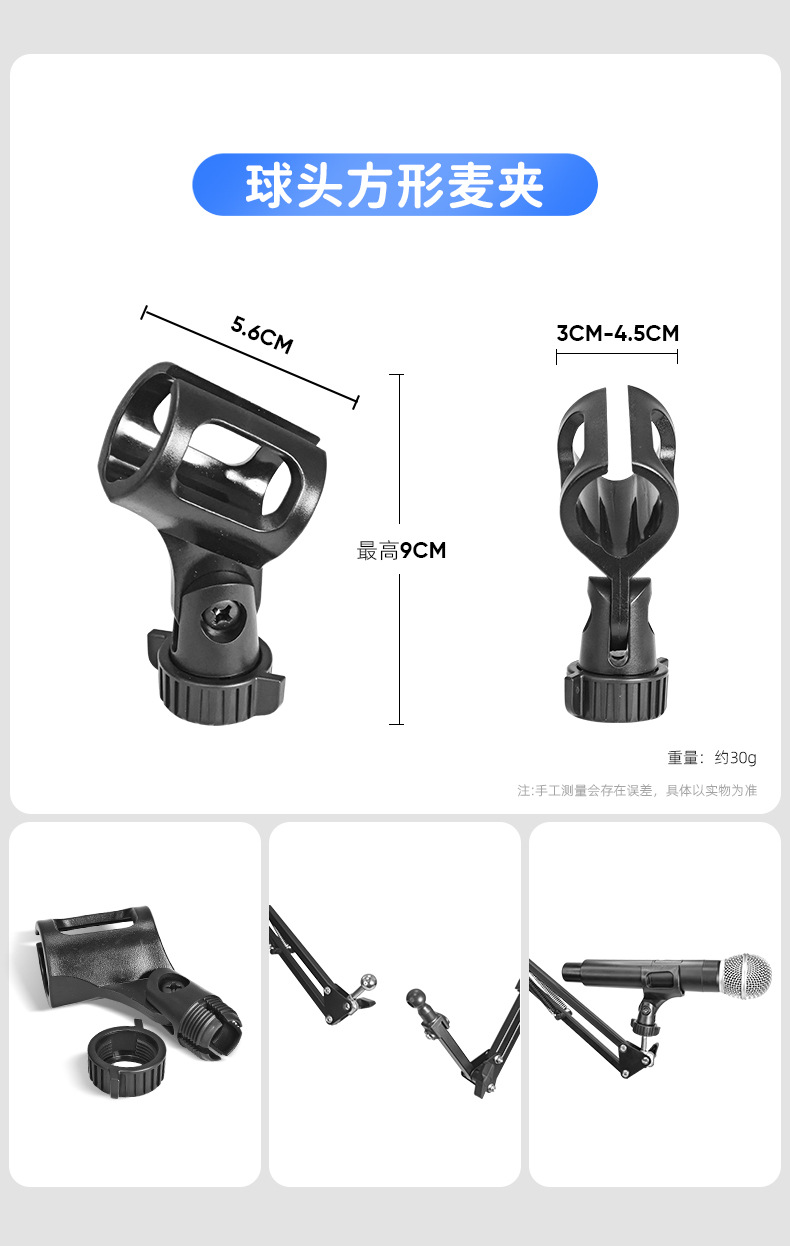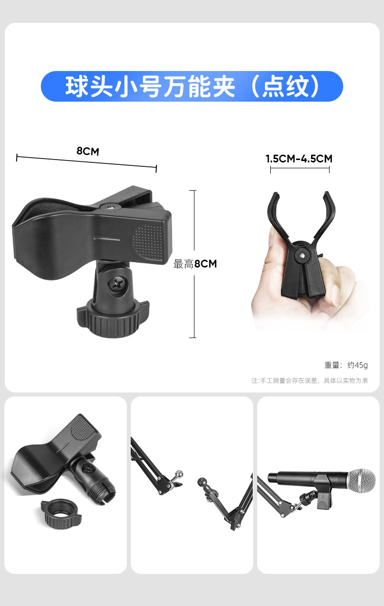 17mm球头通用麦克风话筒夹子有线无线麦克风弹簧咪夹直播支架配件